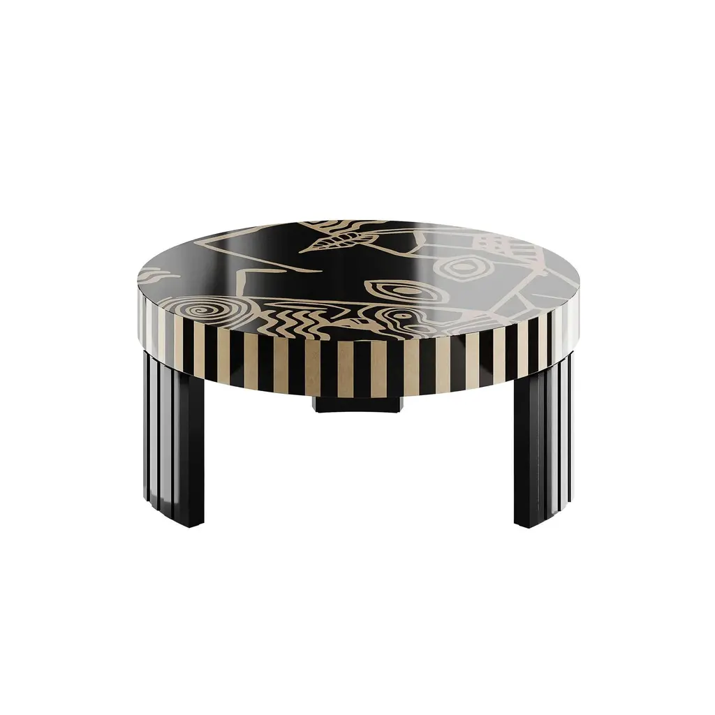 Malaga Center Table In Wood Black And White Print By Hommés Studio