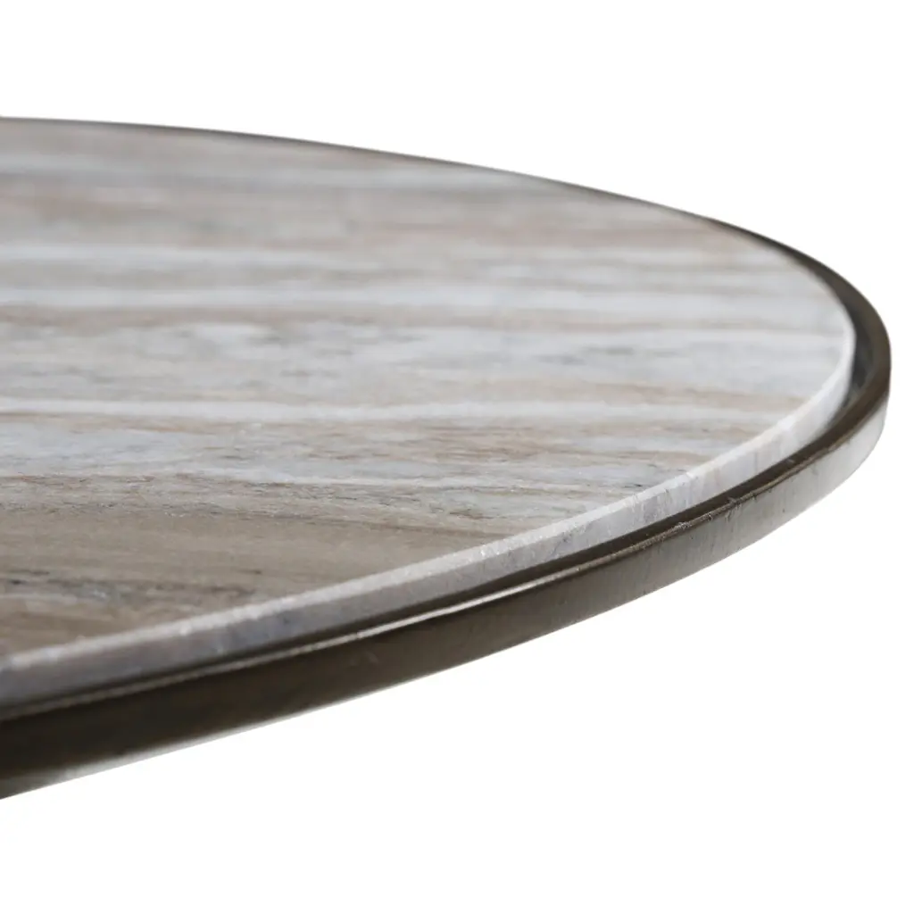 Malia Industrial Taupe Marble Aged Bronze Iron Round Coffee Table