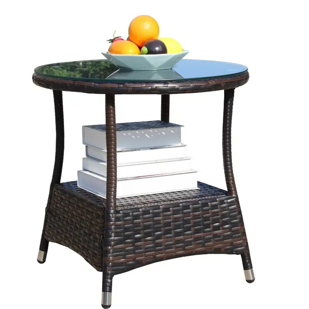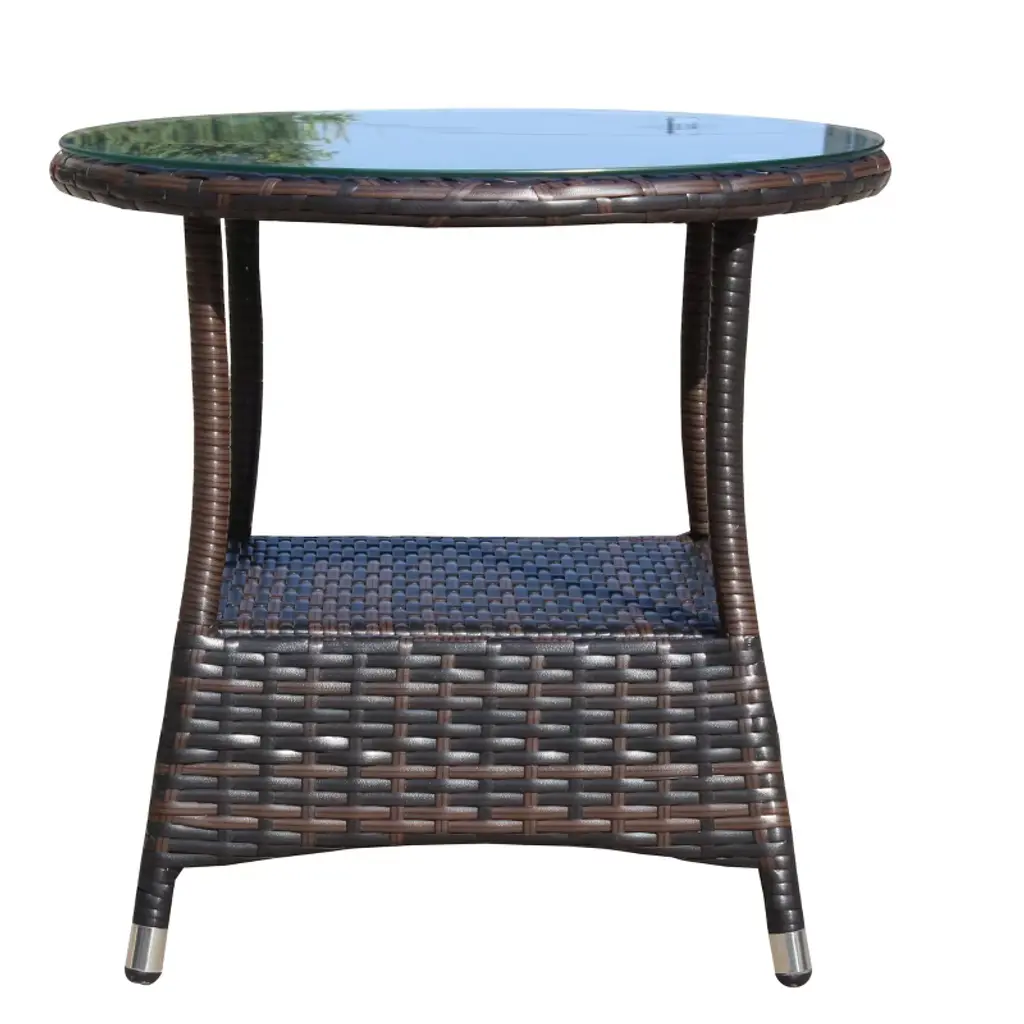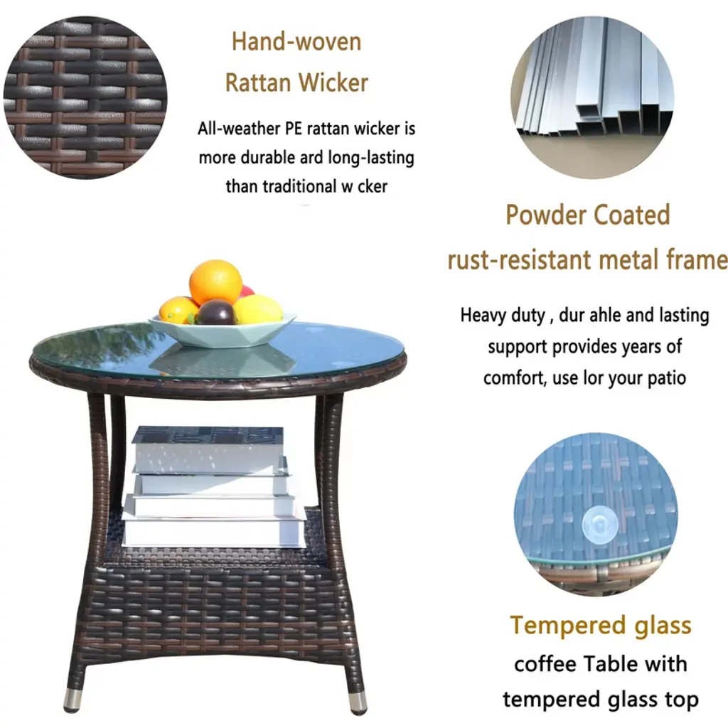 Maliang Outdoor Patio Round Coffee Table With Clear Tempered Glass