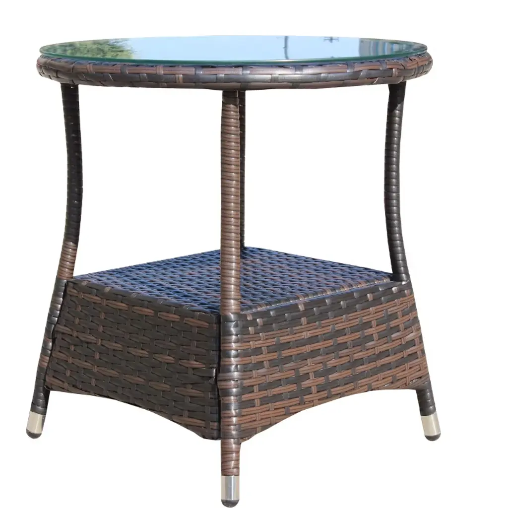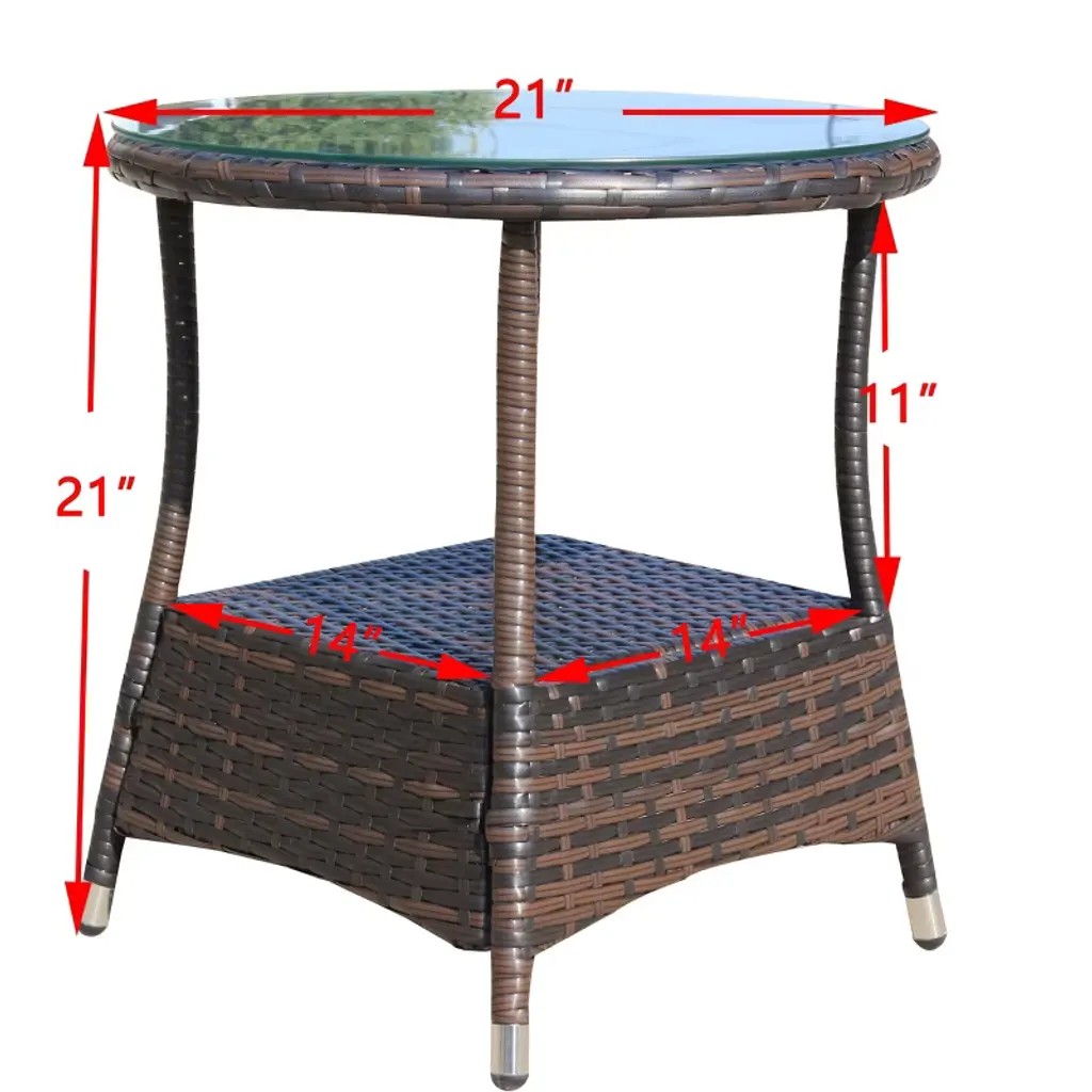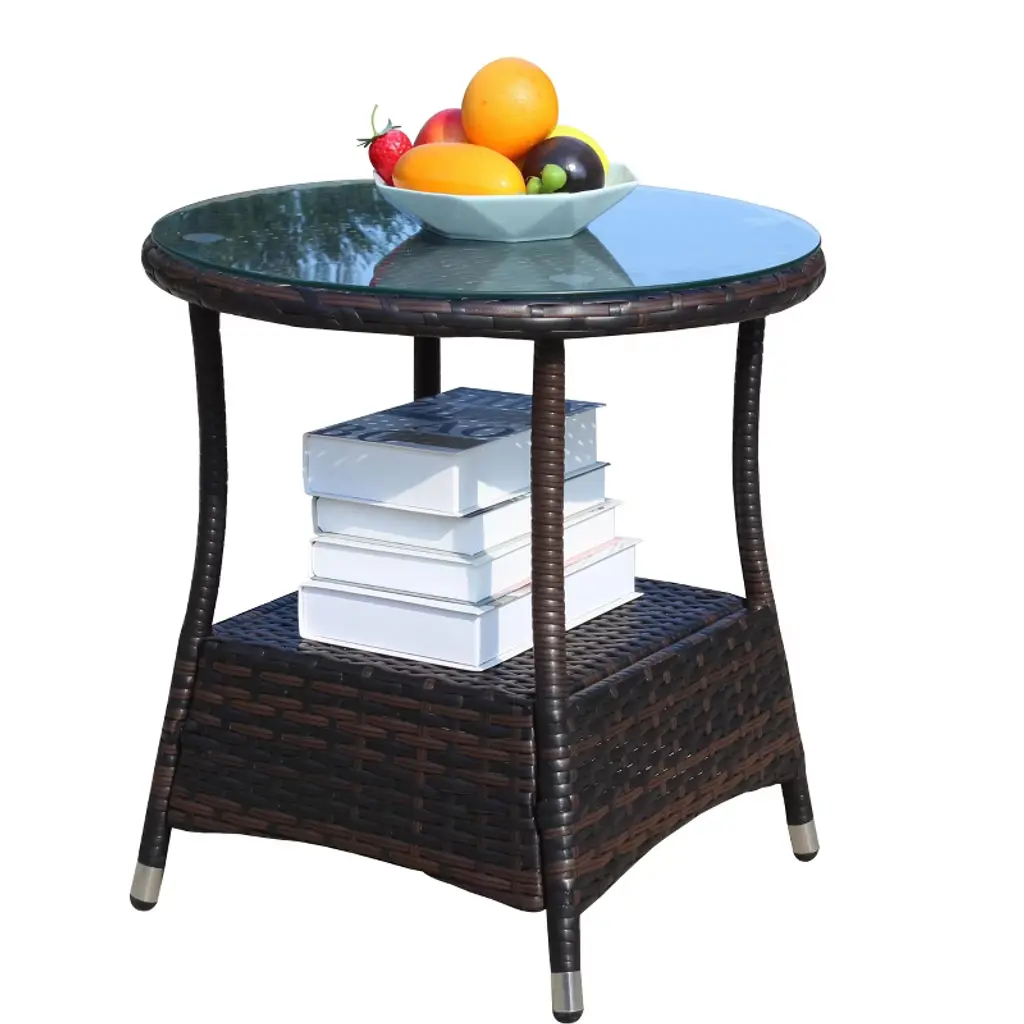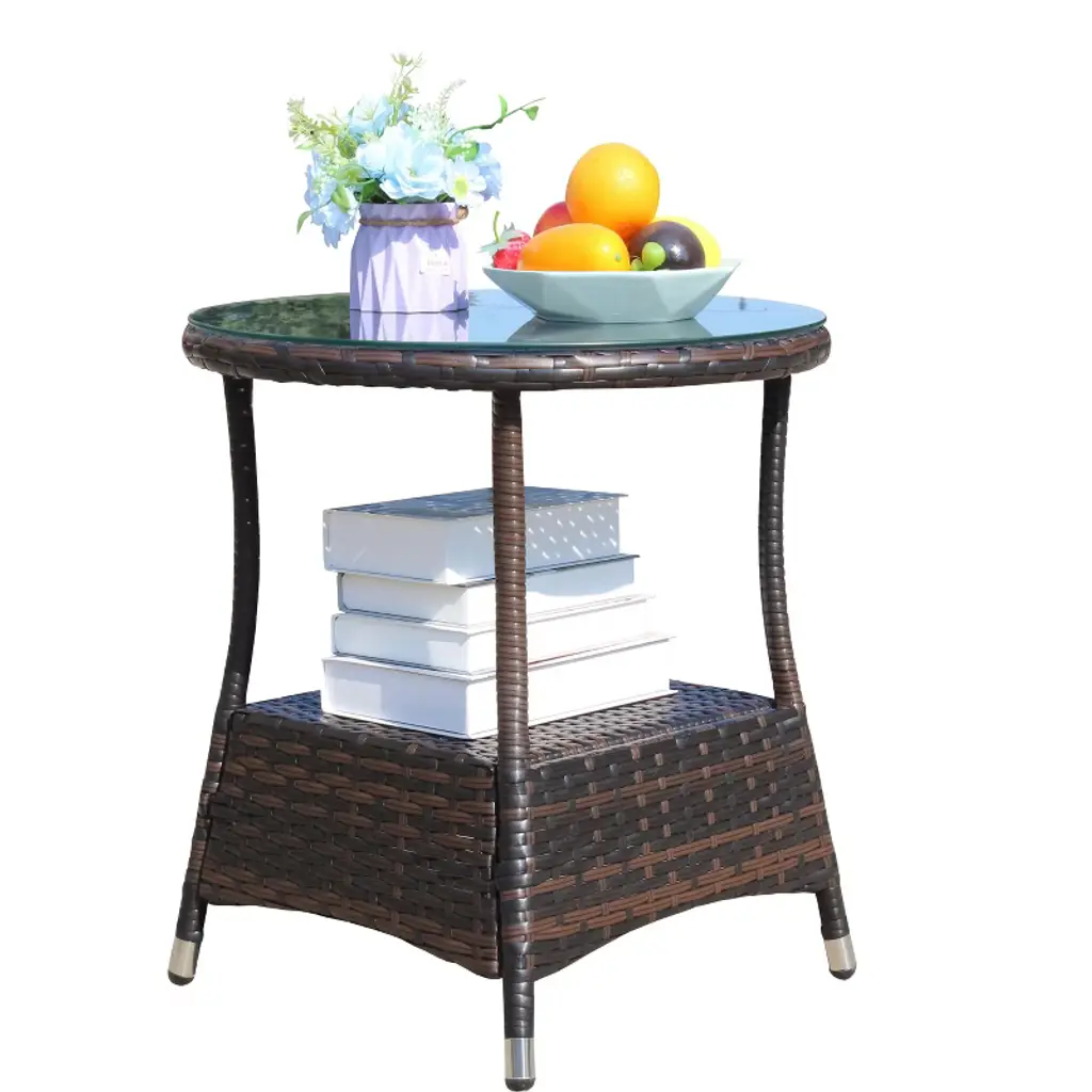 Maliang Outdoor Patio Round Coffee Table With Clear Tempered Glass