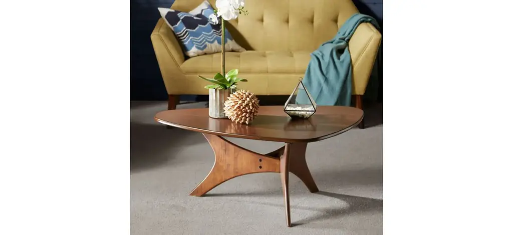Update your living space with the Manastique Triangle Coffee Table. Inspired from the mid-century modern design, this table features a unique cross base and triangular table top that will certainly make a statement to your decor.