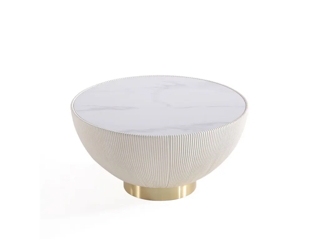 Introducing our striking Modern Anderson Coffee Table, a versatile addition to your living and dining spaces. Crafted with artistic flair, it features unique leatherette pleating and beautiful gold metal finishes that add a touch of stunning design to your home decor. Built with a high-quality steel frame and feet, this table effortlessly combines style and durability. Pair it with our Manhattan Comfort End Tables to create a cohesive and stylish look, making your living and dining areas stand out.
