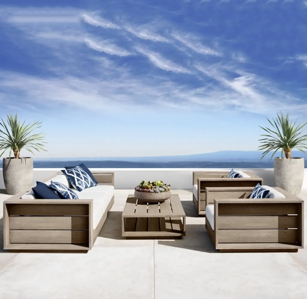 Defined by broad teak planks and a striking inset panel design, our Massimo collection is an expression of the modern eye. Revealing the architectural inspiration of Mies van der Rohe, the silhouette is at once structured and relaxed. Wood slats with slim reveals, set off by a shadowbox treatment, are a continuous design element, while inset plinth bases lend the appearance of floating. Guaranteed for life.ALSO AVAILABLE IN ALUMINUMSHOP THE ENTIRE COLLECTION