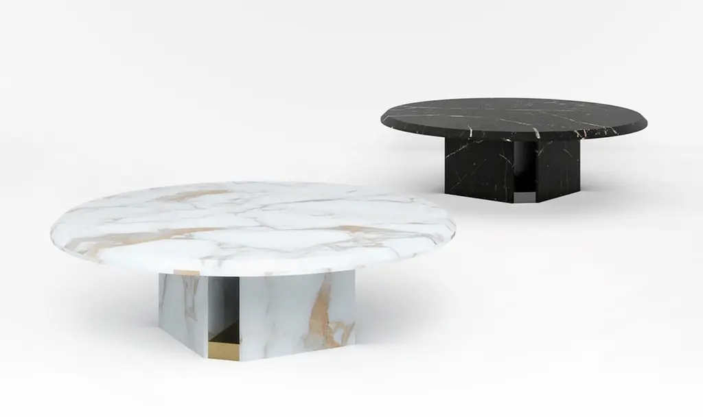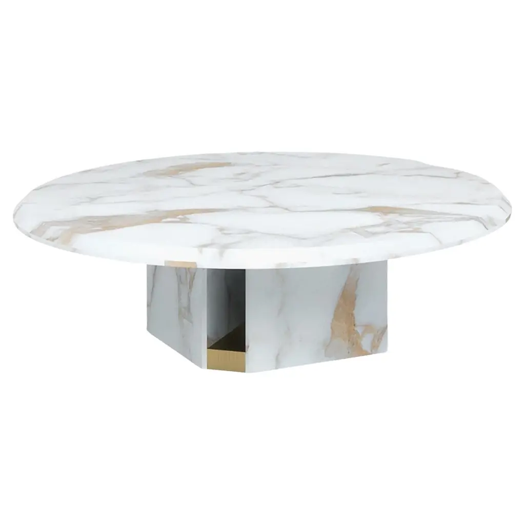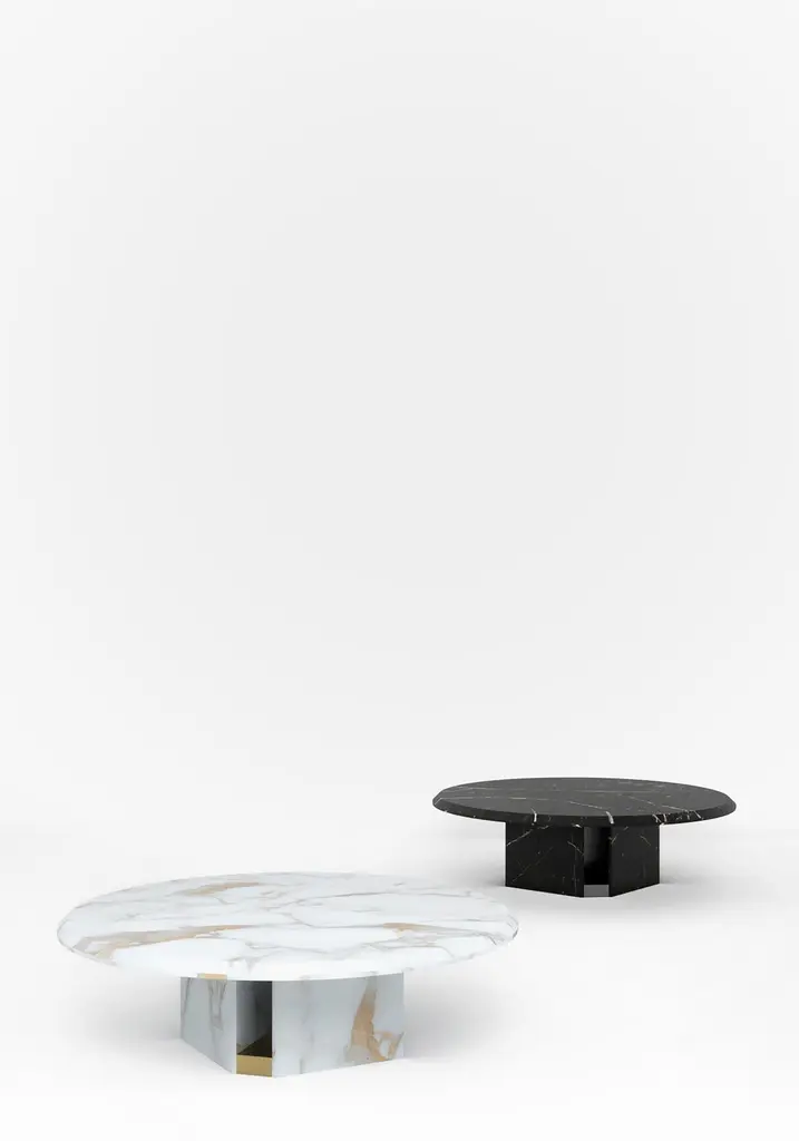 Marble "Delos" coffee table - Giorgio BonaguroDimensions: 30 height x 120 cm diameterMaterials: Calcata Oro marble, satin brassAvailable in other marbles and metal finishes.Collection of tables developed from a pure block of marble, with a base divided into two or more massive elements, reminiscent of ancient pillars or supporting columns.These furnishing elements have great versatility thanks to their geometric and essential shapes. The base and the top are in marble, with a central metal insert in different finishes.Giorgio Bonaguro studied mechanical engineering in Modena and then graduated at Scuola Politecnica di Design in Milan, in the double Master of Industrial and Interior Design. He has worked in several design studios in Milan, first at Lorenzo Palmeri's, then with Francesco Faccin, at Michele De Lucchi's Studio. And then with the designer and critic Marco Romanelli. He collaborates with several companies and develops limited editions presented at some international fairs such as Salone del Mobile, Design Miami, London Design Festival, Maison et Objet, Design Days Dubay, ecc. He works between Italy and Brazil in the field of product design, interior design, exhibition and lighting, trying to combine a linear style with research and contamination between materials.