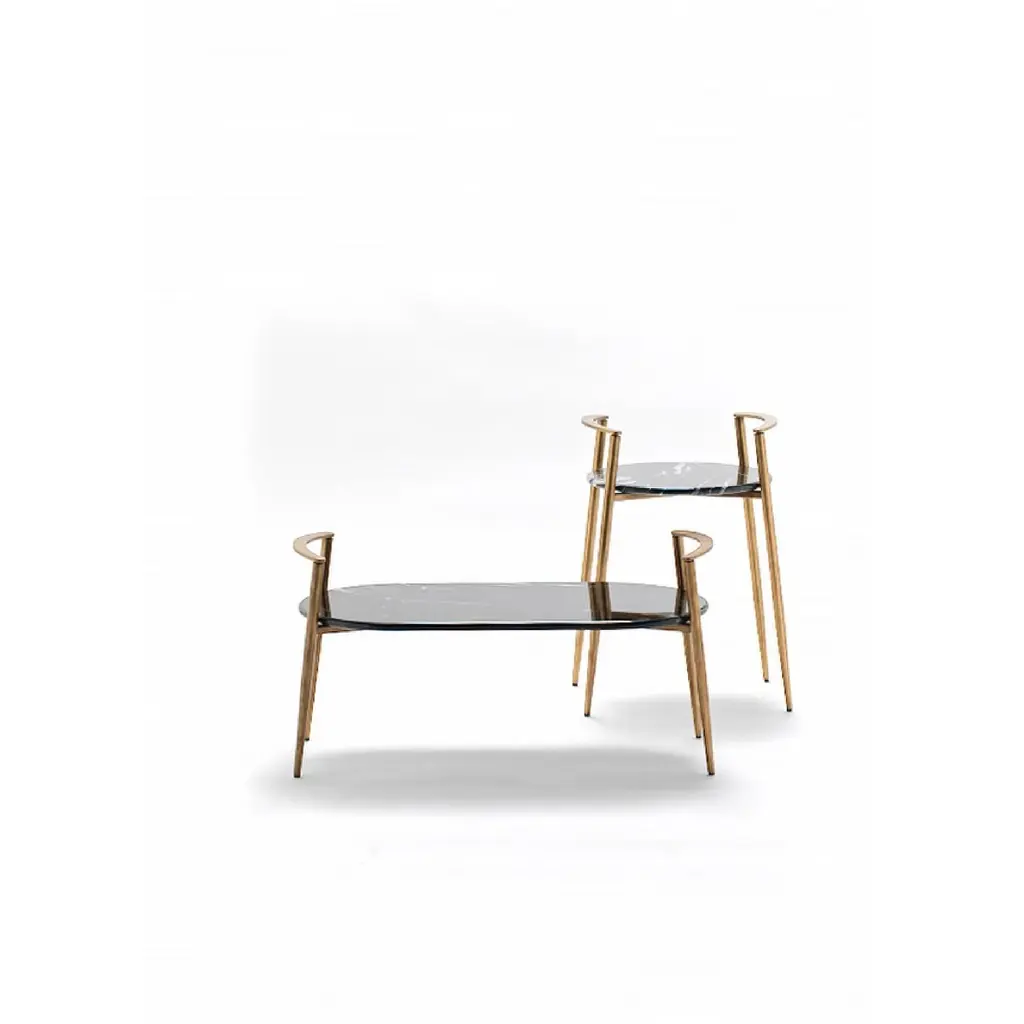 Montgomery T is an oval and round coffee table available in various sizes. It features a fixed four-leg steel structure coated with a powder finish or a double treatment of powder and liquid. It comes with a marble top in six different variants. This table perfectly complements the entire Montgomery seating series but can also harmoniously fit into other arrangements.