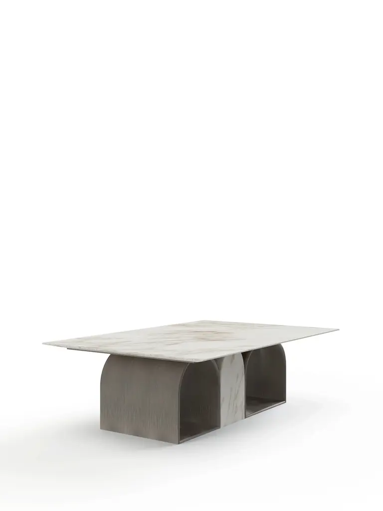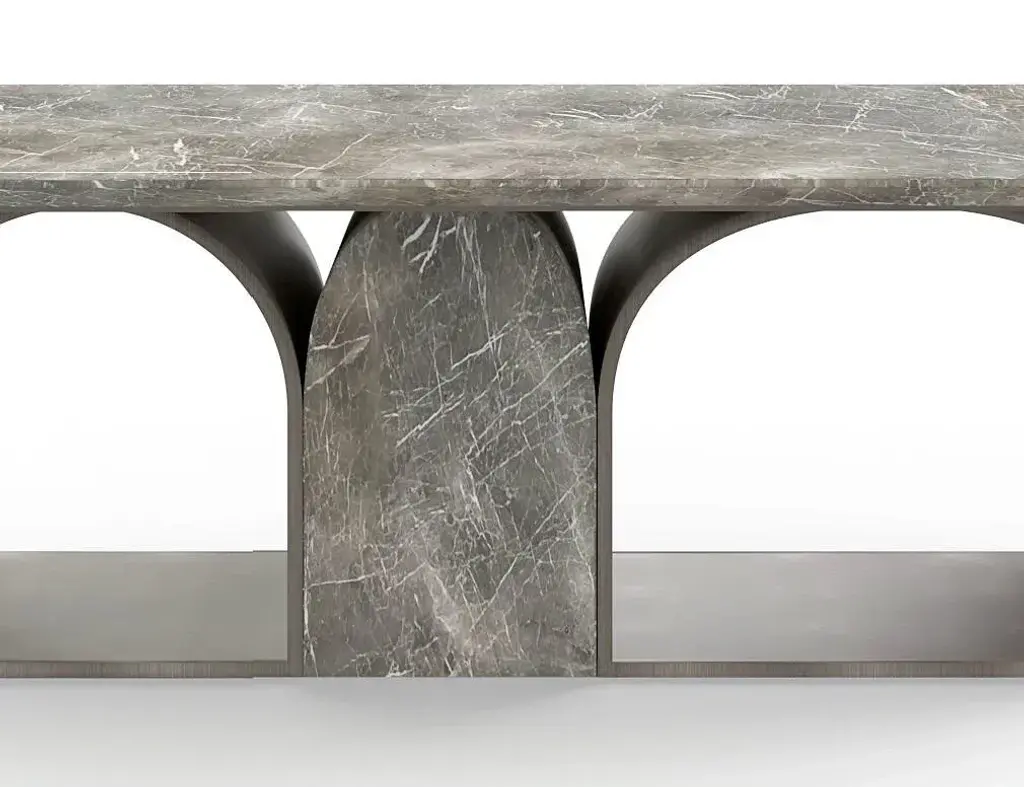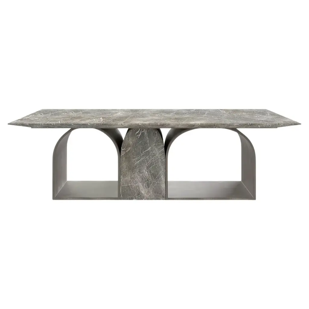 Marble "planalto" coffee table - giorgio bonaguro dimensions: d 120 x w 80 x h 35 cm materials: stardust marble, burnished metal available in other marbles and metal finishes. Collection of tables characterized by a sculptural base whose sinuous shapes recall the typical arches of brazilian modernist architecture, from the buildings built on the plateau of brasilia (the planalto central), to the outskirts of milan. The bases are made up of modular elements, which allow you to create tables of different lengths. They are made with top and solid base in marble in different finishes, and brushed metal structure. this piece is attributed to the mentioned designer/maker. It has no attribution mark and no official proof of authenticity, however it is well documented in design history. I take full responsibility for any authenticity issues arising from misattribution