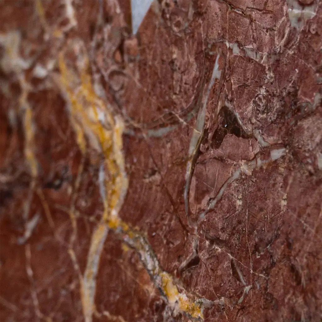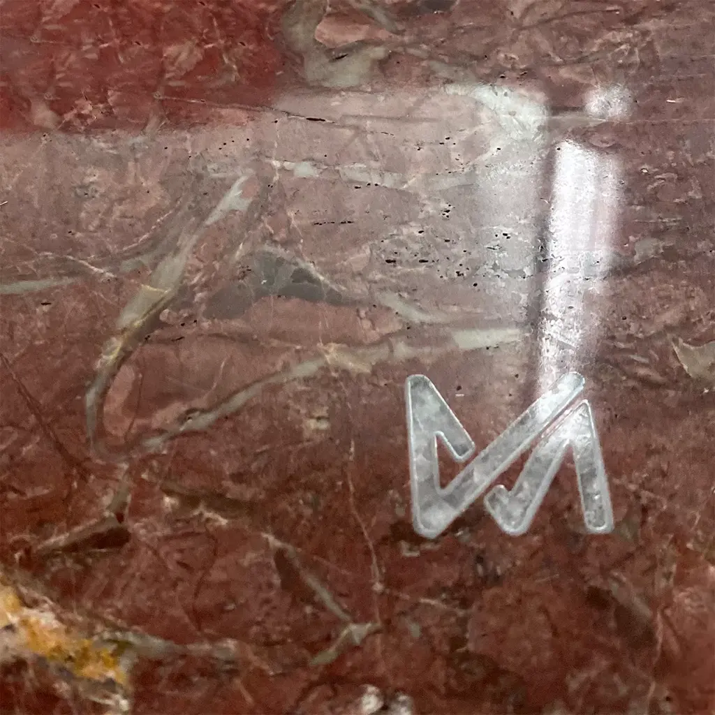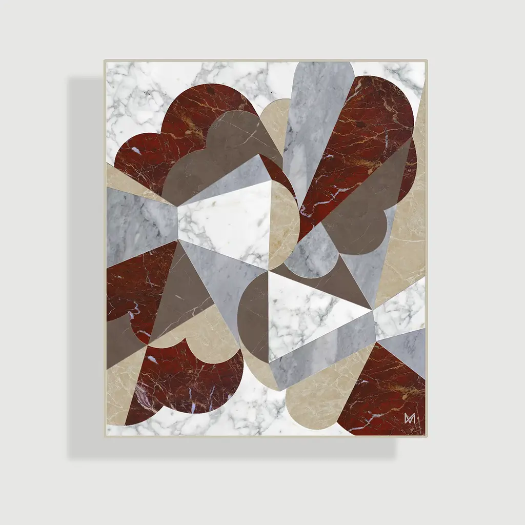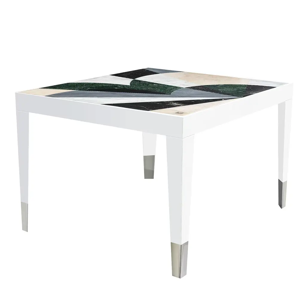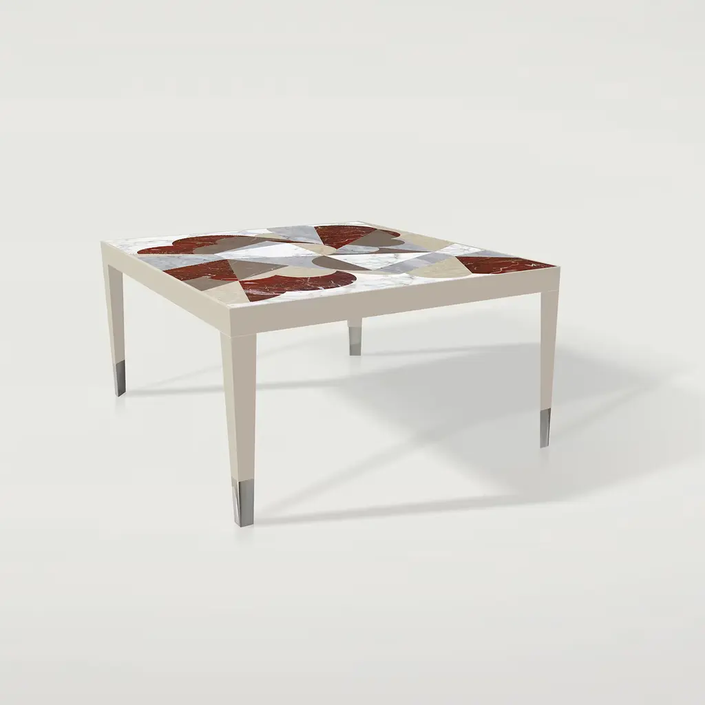 Part of Marzia Boaglio's Marmo Collection, this luxurious Sogni (meaning "dreams") coffee table showcases an impressive abstract tribute to the magic of daydreams. Flaunting an elegant glossy powder-pink finished wood frame with astonishing marble inlays crafted in refined Emperador, Red Empire, White Statuarietto, White Carrara, and Gray Graphite stone, it is embellished by glossy steel feet. A masterfully crafted elegant accent piece for a sophisticated contemporary interior.