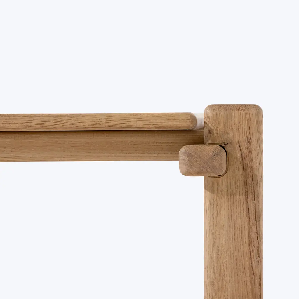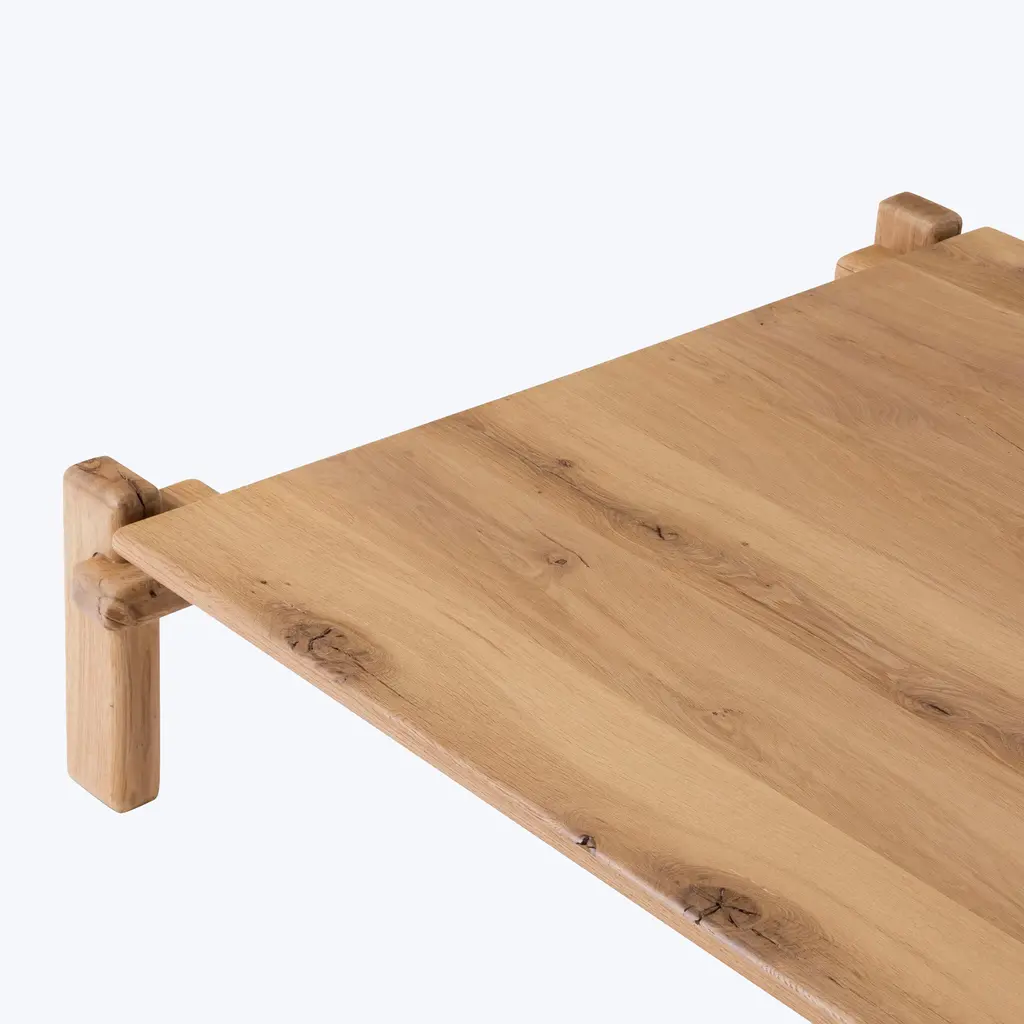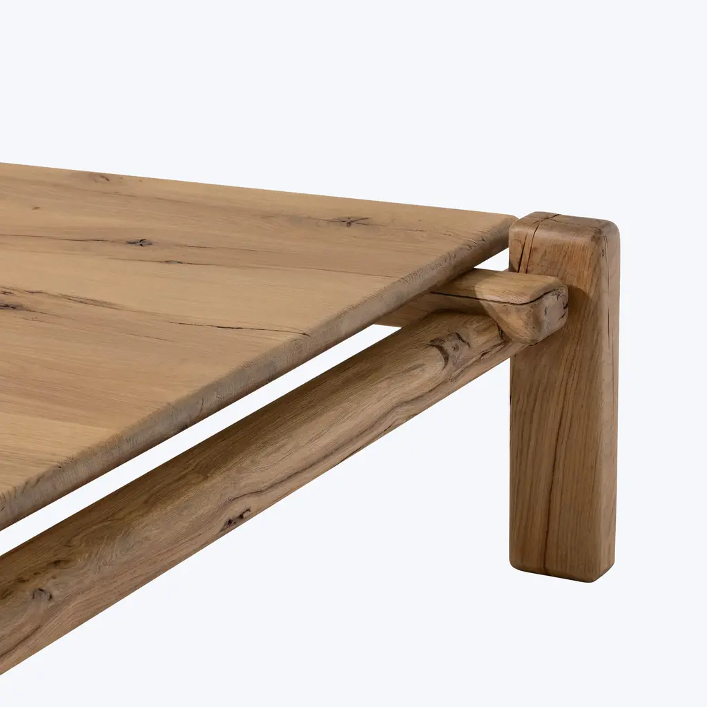Designed by Thomas Bina and Ronald Sasson, the Four Hands Coffee Table captures the duoÕs expertise in merging modern minimalism with Brazilian craftsmanship. Constructed from solid reclaimed French oak, this table embodies authenticity and durability, showcasing distinctive, oversized joint details that add visual intrigue and emphasize its artisanal construction. Offered in two shapes and sizes, this piece brings both functionality and presence to your living space.Its natural oak finish enhances the character of the reclaimed wood, creating a uniquely textured look that adds warmth to contemporary settings or complements rustic dcor. The soft, rounded edges lend a playful touch to the clean-lined, structured silhouette, balancing sophistication with warmth. Ideal for those who value sustainable materials, this coffee table is crafted in Vietnam, ensuring high-quality construction that makes it a lasting, eco-conscious centerpiece.