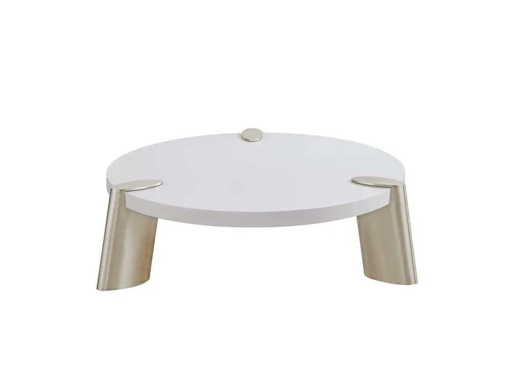 Marek Round Coffee Table, Matte White Top with Brushed Stainless Legs.