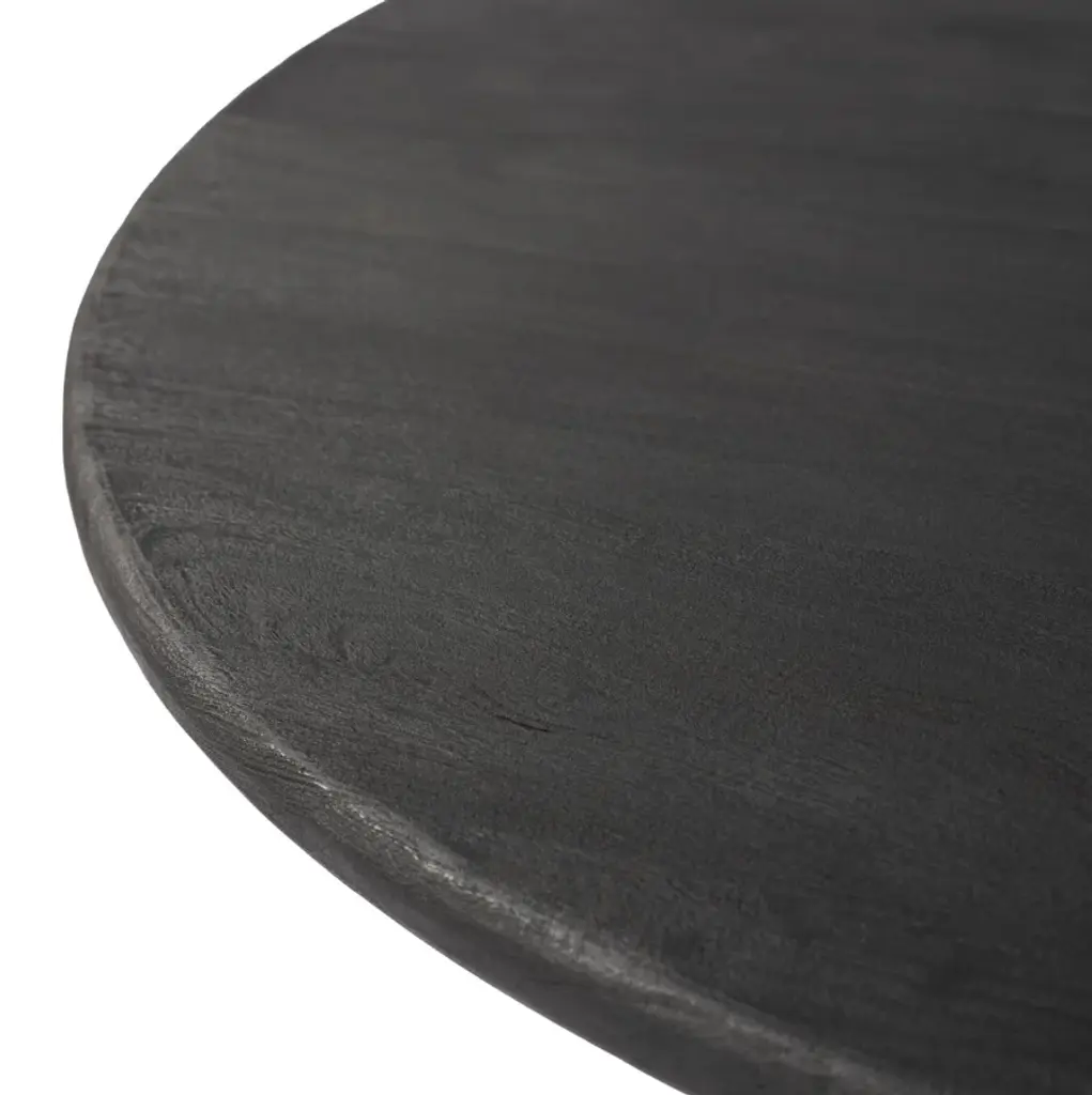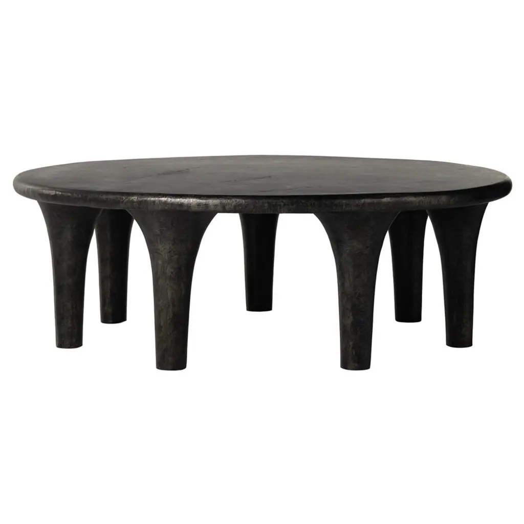 Constructed from solid reclaimed wood with a black finish, the Maricopa coffee table plays up proportions through shapely legs that uphold a round tabletop. Adding an organic look and handcrafted feel to your space.