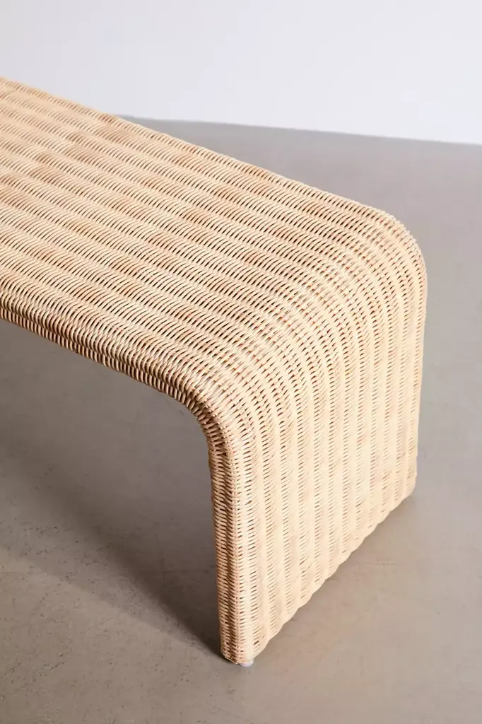 Arching coffee table made from woven strands of rattan in two size options for ultra-versatile use. Flat tabletop with rounded corners in a natural finish. Grab one or pick up both sizes to nest them together for endless ways to display! Available exclusively at Urban Outfitters.