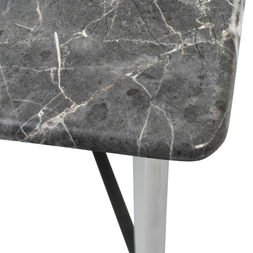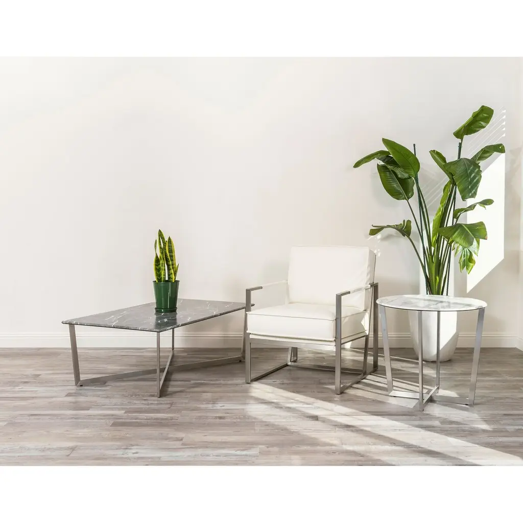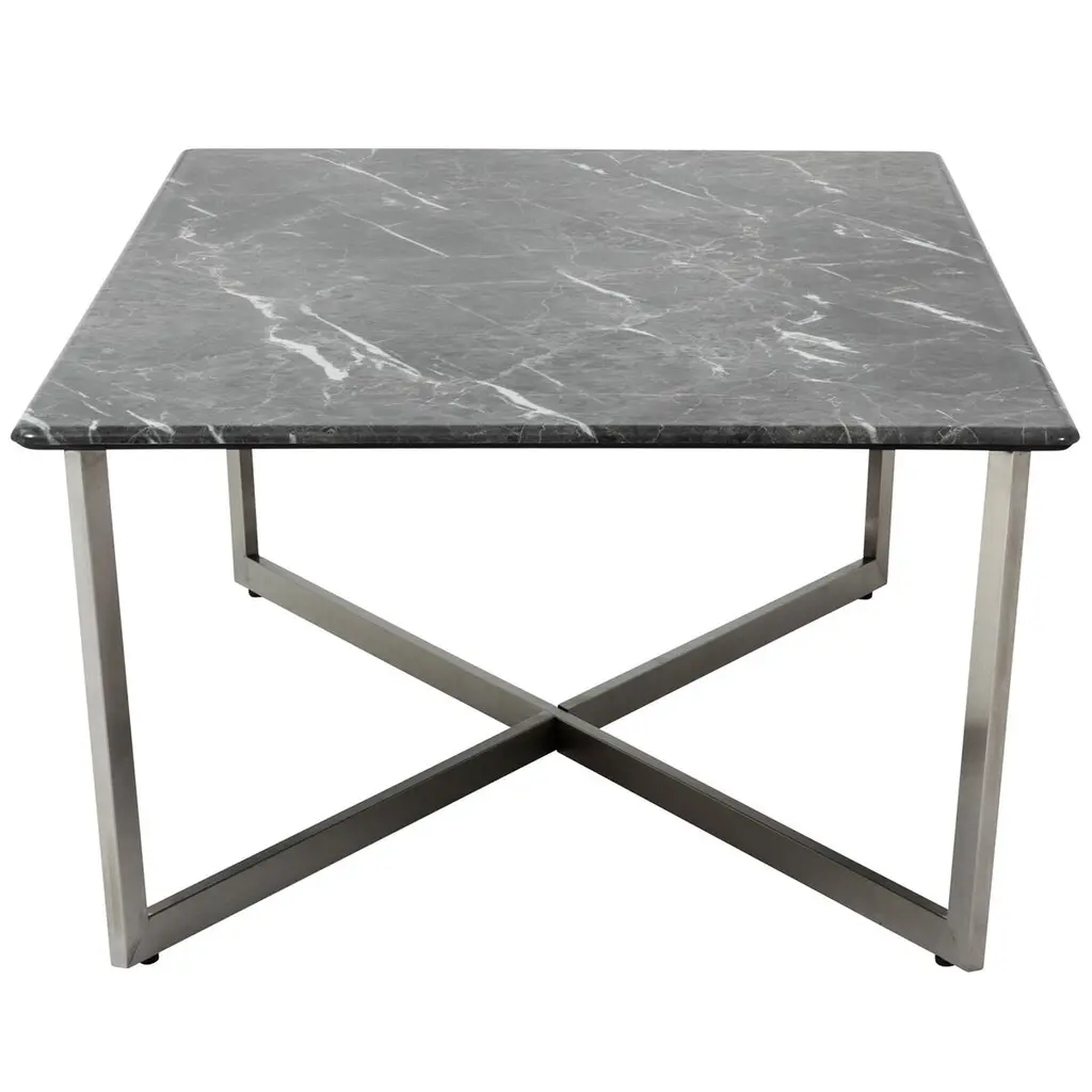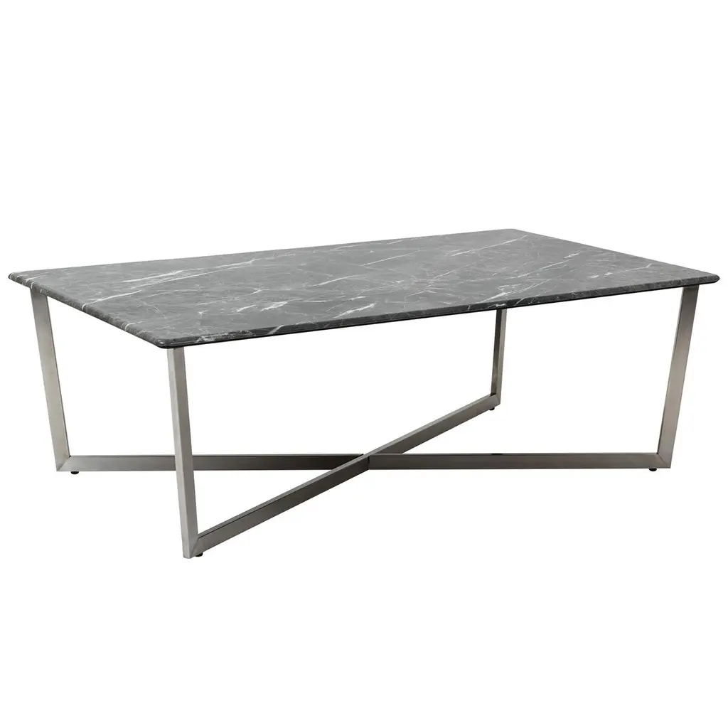 The Marquin Rectangular Coffee Table is arranged to have a two-dimensional appearance when viewed from certain angles. The beautiful marble top comes with stainless-steel legs. The effect is a polished look and unique shape.