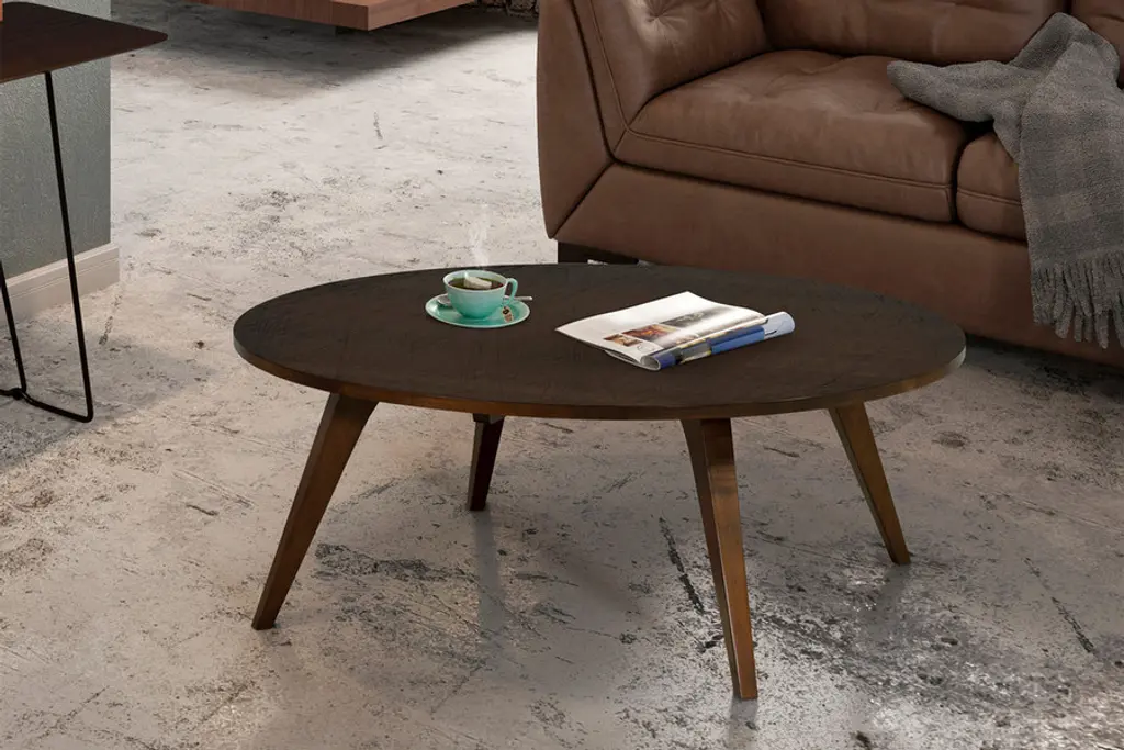 Designed by Peter Francis, the Martin Cocktail Table adds a modern accent to a living space's dcor. The cocktail table comes equipped with an etched round top of solid maple wood that blends style and function. It also features splayed legs that are both sturdy and attractive. Enjoy a top-notch cocktail table that will sparkle in a contemporary living space by picking up the Martin Cocktail Table.