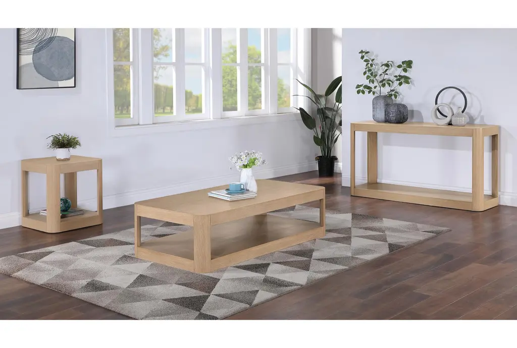 Enhance your living room with the Martine Modern Natural Wood 54" Rounded Rectangle Coffee Table. This stylish table features a contemporary design that will complement any modern decor. Its natural wood finish adds a touch of warmth and sophistication to your space.