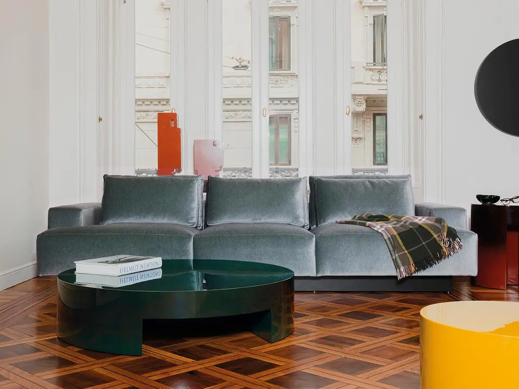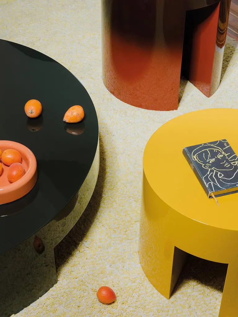 A set of small tables characterized by a peculiar shaded lacquer and a simple gesture that by cuttingcylindrical volumes creates the object by subtraction. A small family designed by playing on differentcircumferences, heights, and colors.Monolithic structure composed of emptied mdf. Nuanced Dark green polyester lacquered high gloss finish.More lacquered finishes are available as per sample book.100 gloss shiny polyester gradient lacquer is available for some products. There are seven colors available for this special finish in which the base color is darkened and applied with a gradual gradient to achieve a truly unique visual impact.The 100 gloss shiny polyester lacquers, with machine and manual brushing, are obtained thanks to a process that requires up to eight different paint coats. A range of colors specially designed for this collection is also available in matt finish.