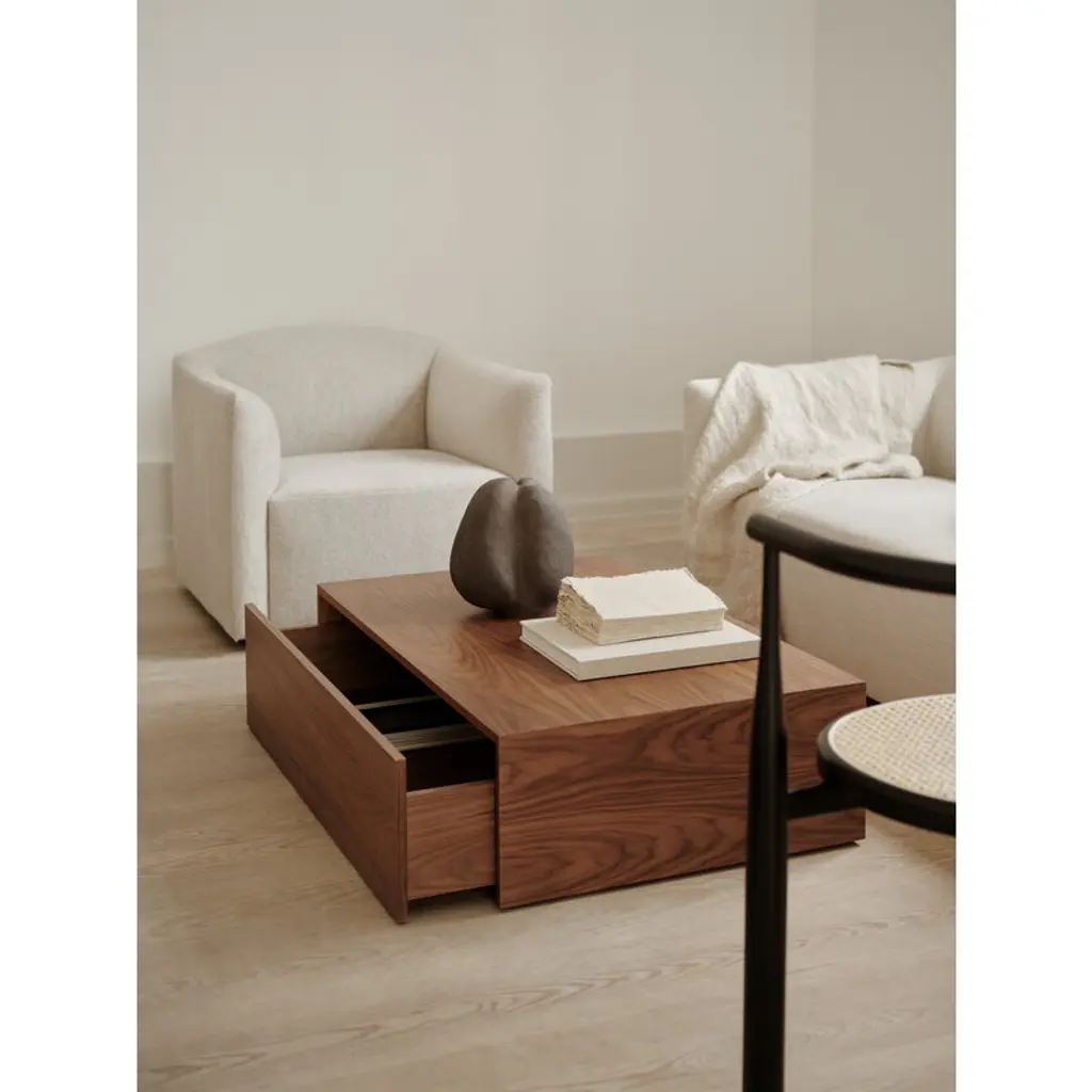 New Works’ Mass High coffee table delights with its simplistic character. Created by the Lim + Lu design studio, the Mass High table is handcrafted from walnut veneer and its beautiful wood grain creates a charming vivid pattern on the top, making each coffee table a unique work of art. The straight-lined and sculptural design is ideal for different environments and interiors from homes to public spaces as well. A small drawer on the side completes the coffee table's sleek look and offers storage for the tiny treasures.