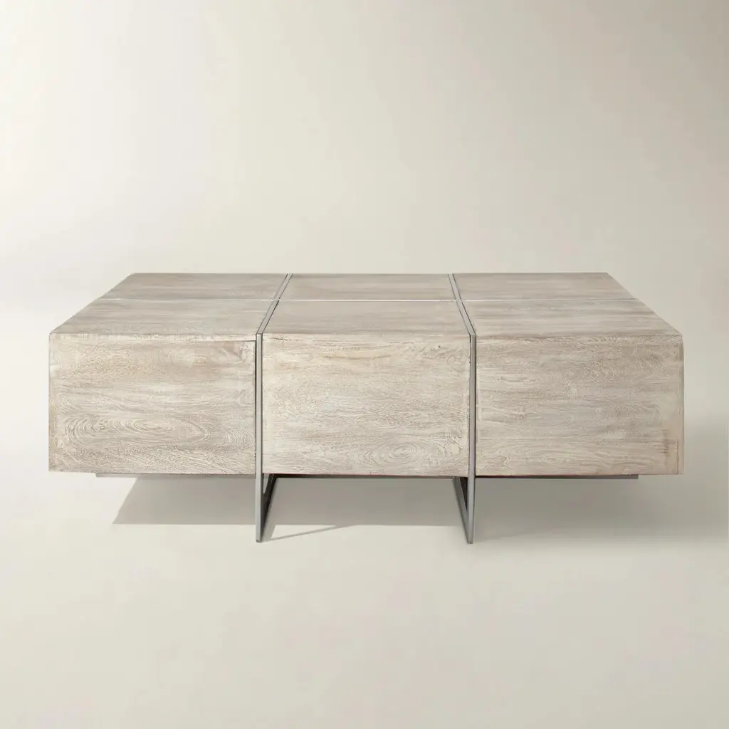 Brutalism meets minimalism in striking square coffee table designed by Mermelada Estudio to "create a basic shape with a strong visual identity." Cement takes shape in tandem with natural fiber and stone powder, resulting in a hi/lo variation of tone that makes for a stunning anchor to the living room. Sanded and waxed by hand for the finishing touch. Pairs strongly with the Matter Ivory Cement Square Side Table. At home indoors and out. Learn about Mermelada Estudio on our blog. CB2 exclusive.