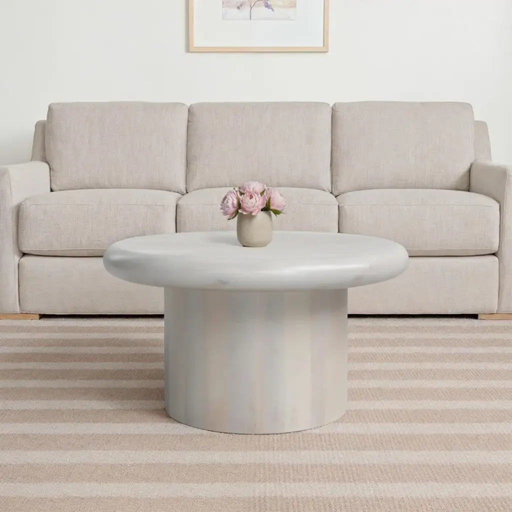 The Mayzie Mango Coffee Table is crafted from durable mango wood, offering a sturdy and stylish centerpiece for your living room. Its white finish adds a modern touch to the natural warmth of mango wood, making it a versatile piece that can blend seamlessly with various decor styles. Designed for long-lasting use, this coffee table provides a reliable surface for your daily needs.
