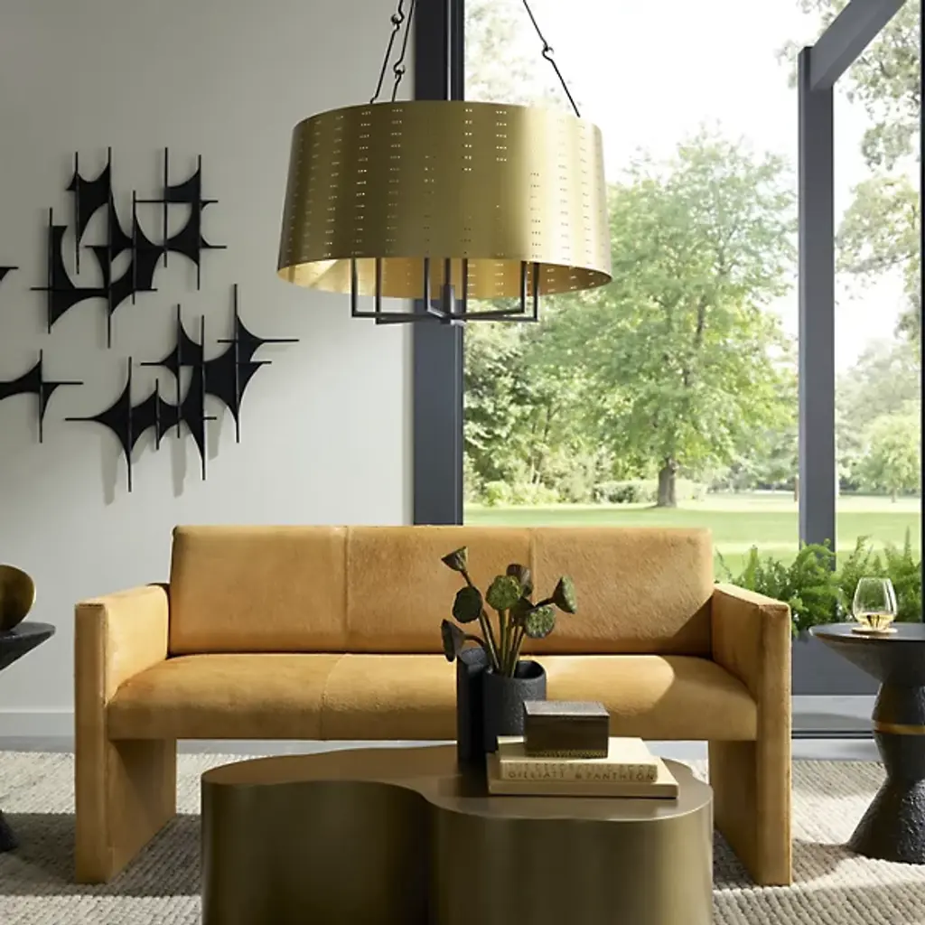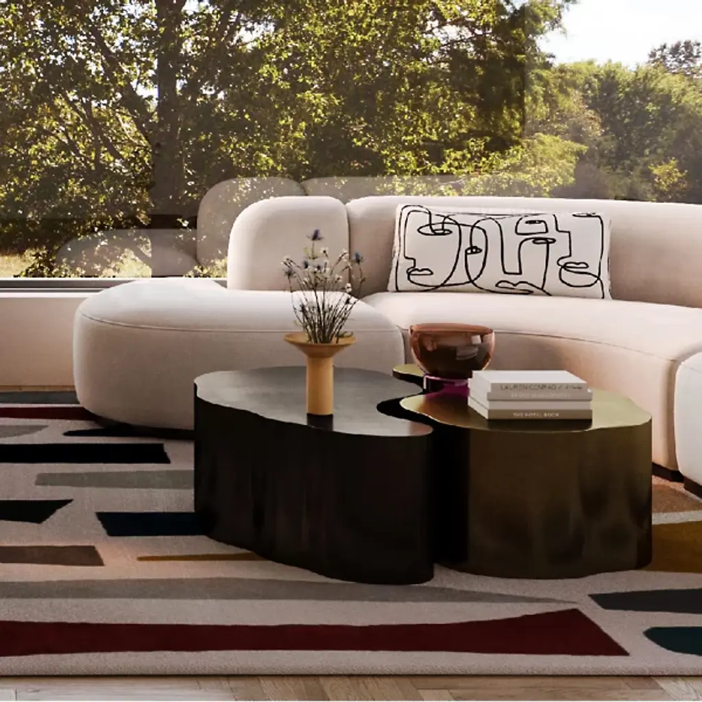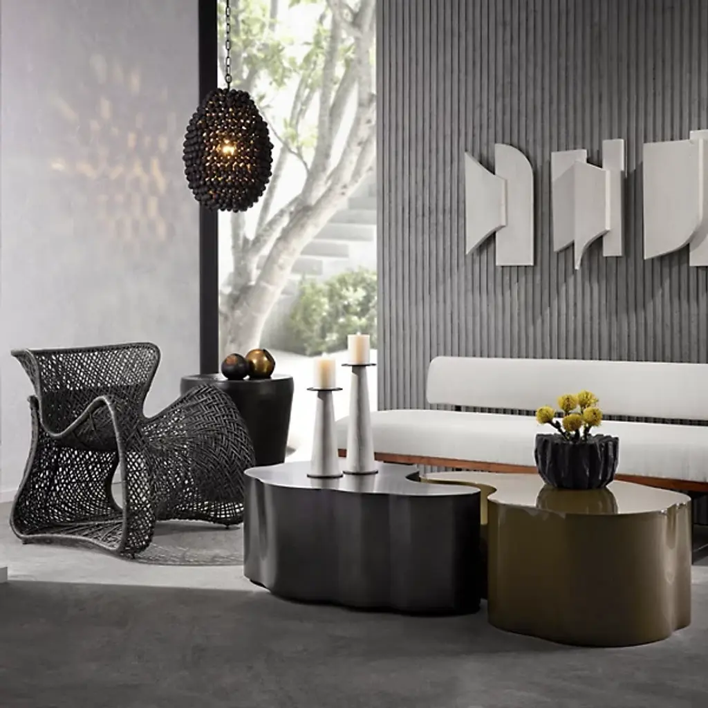 Some furnishings have a unique ability to look good on their own or together with a copy of themselves, the Meadow Cocktail Table from Arteriors is one of those furnishings. Its uniquely shaped construction softens up living rooms through its soft curves that transition neatly one by one. Its semi-reflective surface creates a refined contour outline of the overall piece. Its iron construction assures a stable base for those tasty cocktails. The piece balances on the line of elegant and sophisticated with chic and playful.