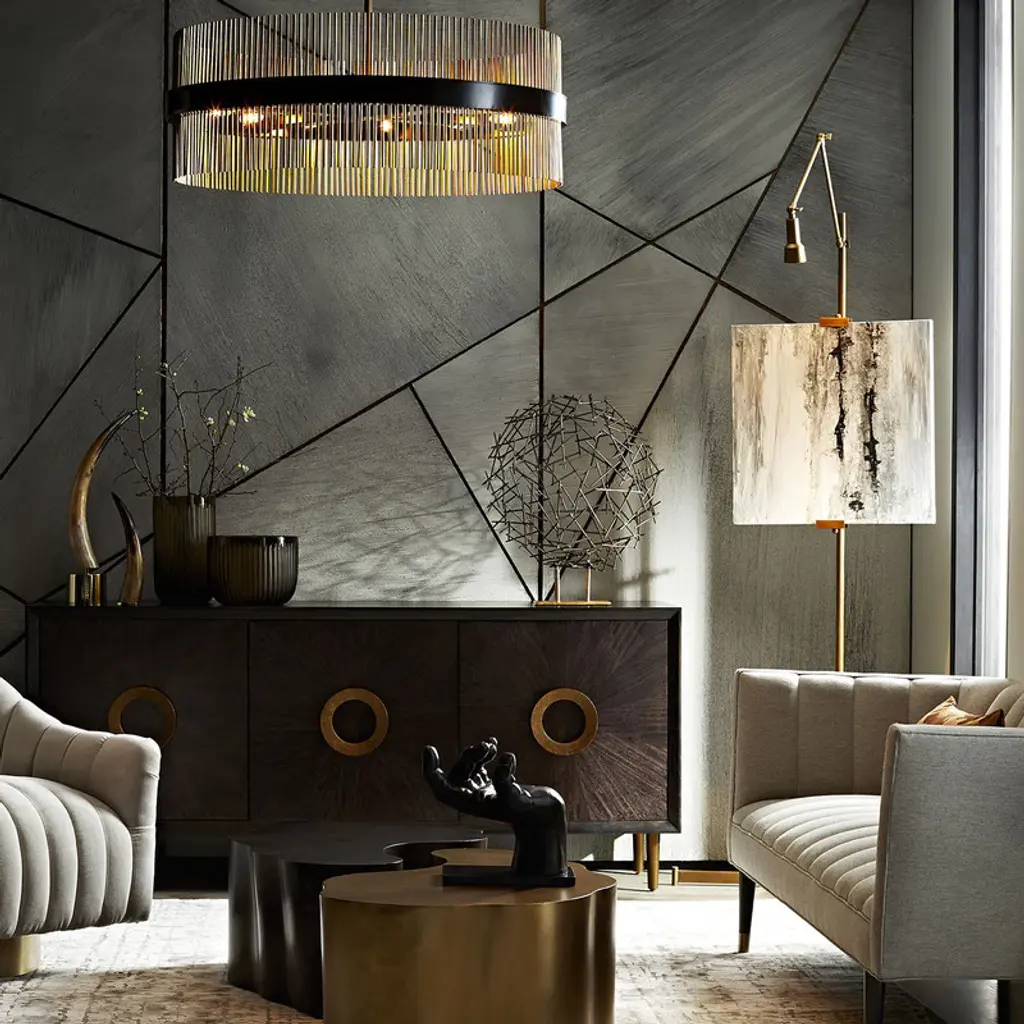A fully functional table with both elevated looks and unique charm, the Meadow Coffee Table from Arteriors brings unexpected, organic form to your well-appointed home. Showcasing playful curves crafted in metallic-plated iron, the warm finish adds a sophisticated element to your favorite living and lounge spaces. Top with designer coffee table books and favorite decor for a luxe display that makes an excellent first impression.Highlights