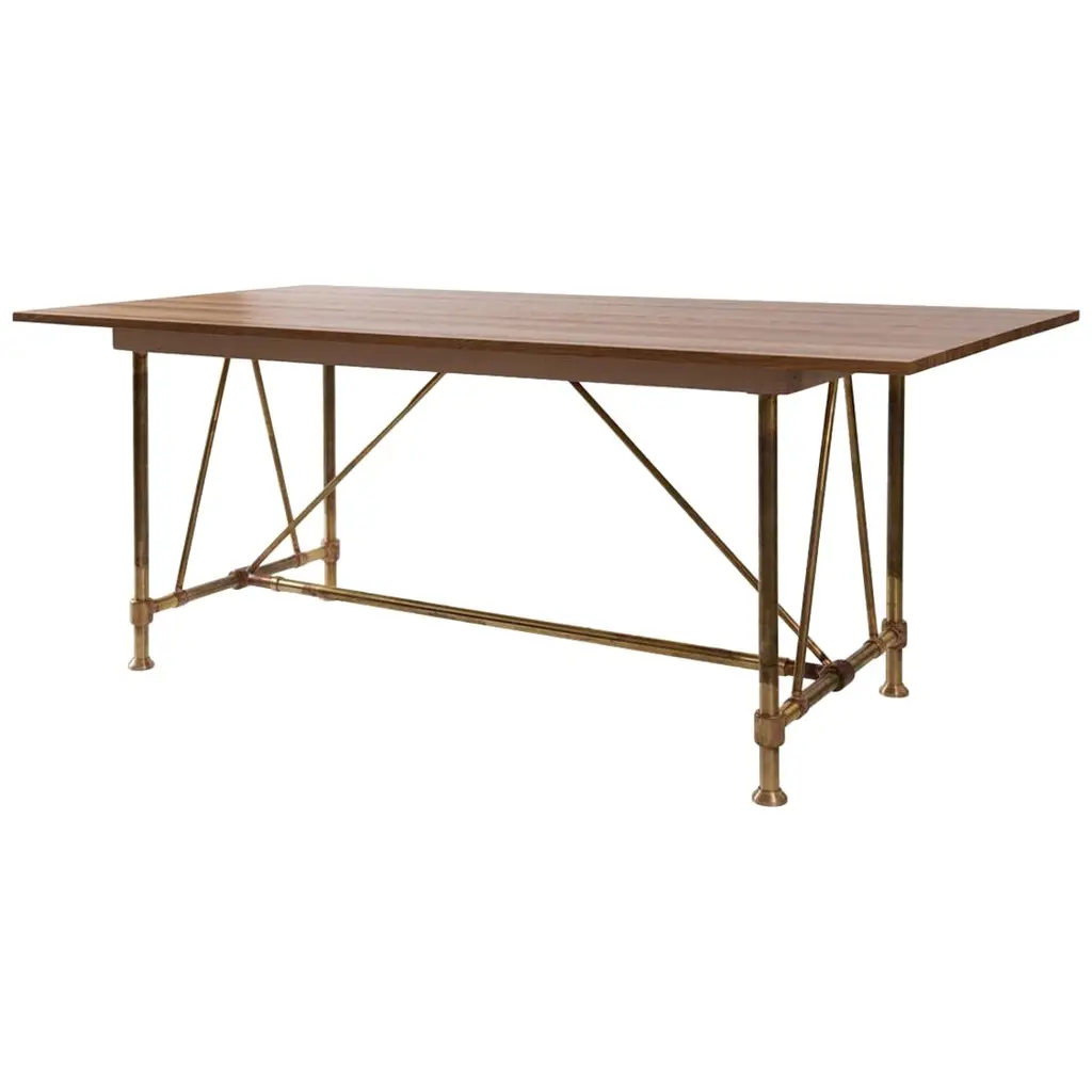 Meccanic Constructions collection refers to the children's construction system Meccano, and is made from individual handcut elements that have been bolted together. Despite the domestic source of inspiration, Joost Van Bleiswijk designs and makes a Limited Edition collection of striking elegance. The handcrafted interconnected elements, all handmade, and the colors of the metals are vaguely reminiscent of Art Deco shapes, and demonstrates how even using unpolished brass and exposed joinery, Joost is able to handcraft pieces of refined beauty. The series includes coffee table, shade extra large floor lamp, vertical floor lamp, cabinet or bookcase.Finishes: Patina and polished brass.