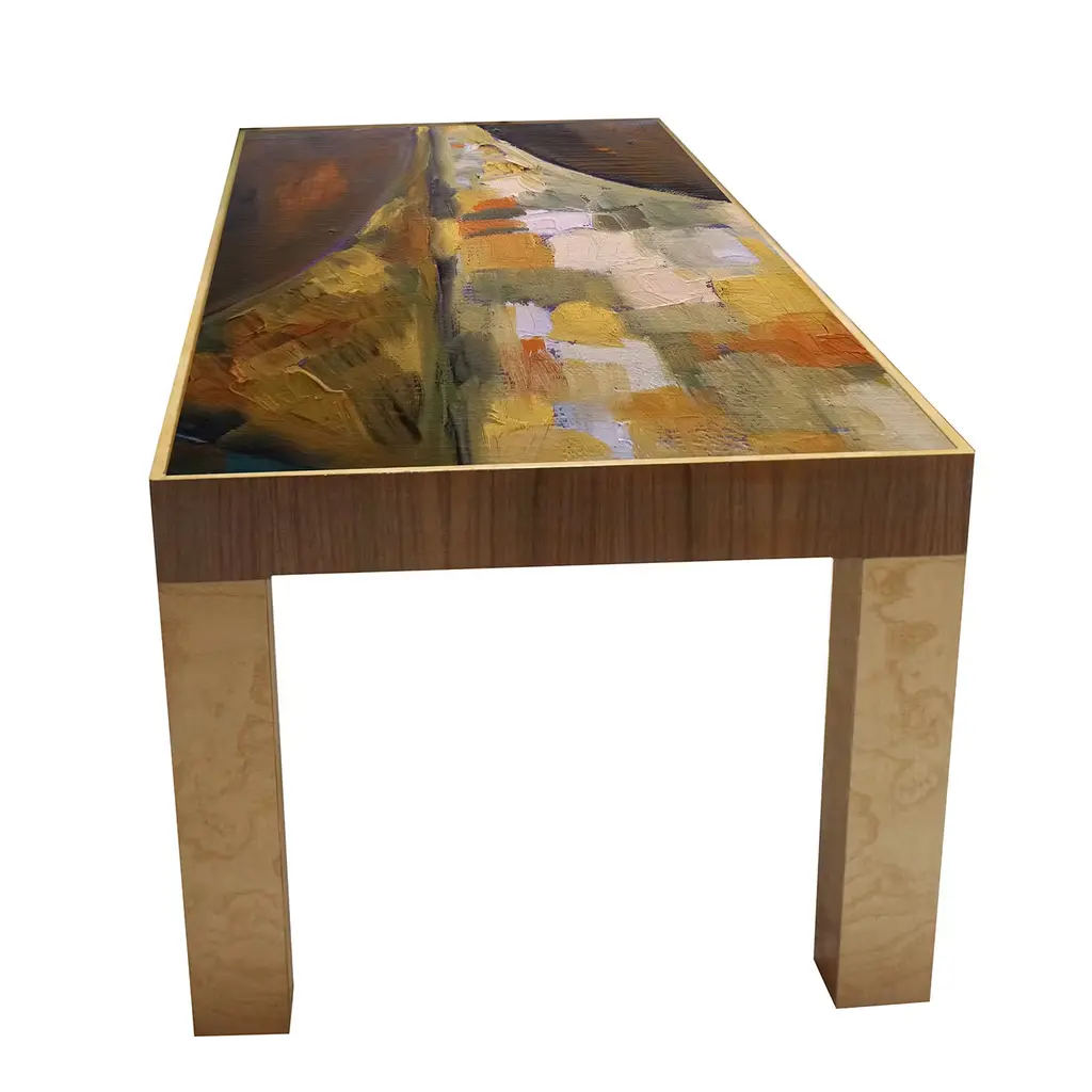 Deftly painted by hand in a sublime design that celebrates Ferdinando Meccani's oil paintings from the '60s and '70s, this stupendous coffee table is a singular piece from a limited edition of 10 numbered designs created by Mascia Meccani in 2022. Handcrafted of wood, it is finished in precious briar root and walnut. Customizable in size and wood essence upon request, please contact the Concierge for further details.