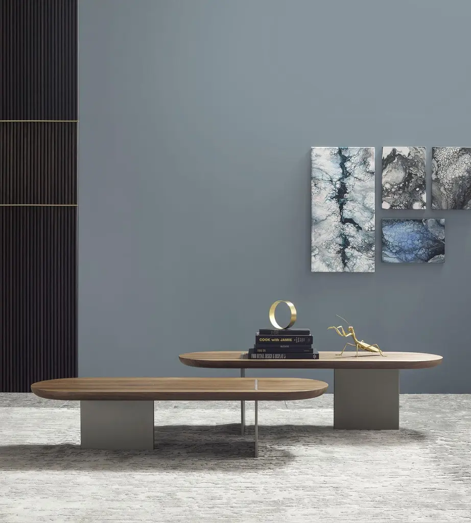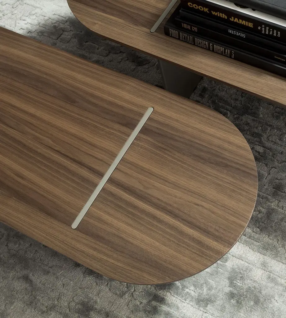 Medium Baguette Coffee Table by Morica DesignDimensions: D 40 x W 120 x H 34 cm.Materials: Canaletto walnut.Available in Canaletto Walnut, Laguna Oak, or natural oak wood. Please contact us.Available in Dark Burnished or Champagne metal finish.Rounded, epoxy powder-coated metal base. Top in shaped and rounded MDF, 4cm thick, veneered with real wood and finished with low environmental impact varnishes.The spark of an idea began with three brothers, Moreno, Riccardo, and Carlo, and the desire to provide genuine Made in Italy design furniture, delivered to customer homes directly from the factory.We guarantee our customers a controlled, certified supply chain and an excellent service that makes it easy for their items to be delivered directly to their homes.We are a fresh organization, full of ideas with the desire to make the world a better place, to change the way we consume by providing beauty, sustainability, and reliable service!