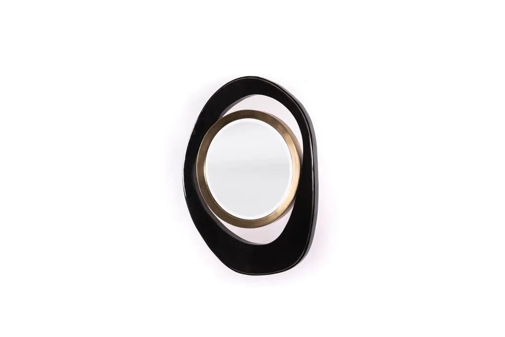 Medium "Peacock" Mirror In Black Pen Shell, Bronze-Patina Brass By R&y Augousti