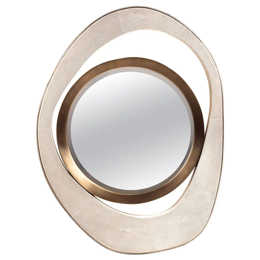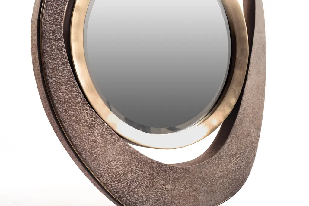 Medium "Peacock" Mirror In Mink Shagreen & Bronze-Patina Brass By R&y Augousti