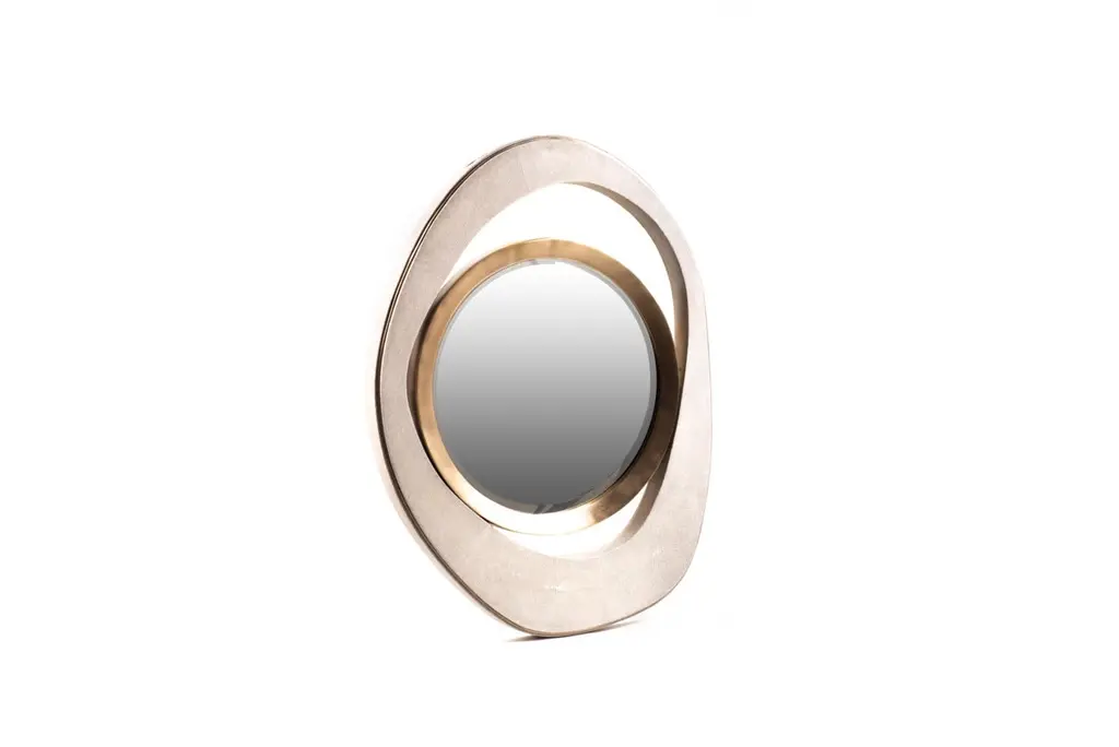 The Paris based label has distinguished themselves since their launch, with their iconic use of shagreen mixed with brass and other exotic materials. All furniture is handcrafted by skilled artisans, ultimately making each piece unique, designed in Paris and produced in the Philippines.The peacock mirror in mink Shagreen and bronze-patina brass details is inspired by R&Y Augousti’s iconic nesting coffee tables is the perfect accent piece to dress up any wall. Available in a large size and other finishes see images at end of slideThe finish of the Shagreen is authentic as it is hand-dyed and the designer calls the finish look: "antique natural Shagreen."The dimensions of this piece are 78 x 58 x 4.5 cm / 30.75" x 23" x 2"All R&Y Augousti pieces are handmade by artisans, ultimately making each piece unique. Custom color/sizing available on request. Wipe clean with soft dry cloth.Acclaimed design duo Ria & Yiouri Augousti have established themselves since the 1990’s as pioneers of modern-vintage style through their luxurious Art Deco inspired collections.The Paris based label has distinguished themselves since their launch, with their iconic use of Shagreen mixed with brass and other exotic materials. All furniture is handcrafted by skilled artisans, ultimately making each piece unique.All Shagreen-covered items should be kept out of direct sunlight, color variants may occur on the stingray and other exotic finishes, but this showcases the Parisian label's commitment to creating authentic luxurious products using natural components.