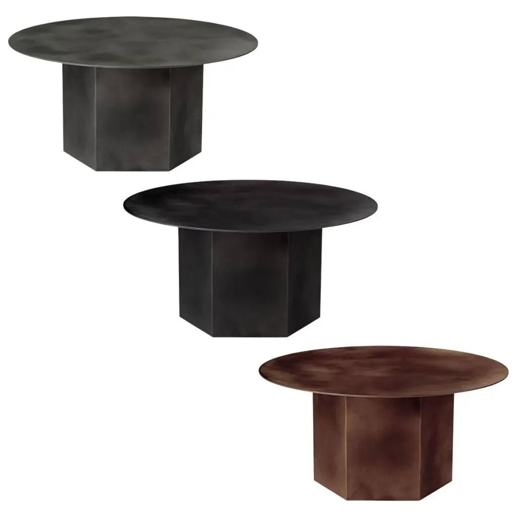 Medium Steel 'Epic' Coffee Table in Misty Grey by Gamfratesi for GubiDesigned by Danish-Italian duo GamFratesi, the Steel 'Epic' Table series for GUBI is executed in solid steel. The metal is galvanized, lacquered, and hand-finished to create a contemporary take on classical architectural elements. The hexagonal base and a circular top combine to create a striking sculptural piece that carries a subtle reference to the iconic columns of Ancient Greece. The varying heights and diameters and finishes within the 'Epic' Table Collection mean a single monochromatic table can stand alone or be combined in dynamic clusters of differing material, height and color.Price is per item. Available in unlimited quantities in earthy red, midnight steel, or misty grey. This listing is for medium 'Epic' coffee table in misty grey. In-stock lead time 12-16 weeks. Out of stock can add additional 16 weeks or more. For time-sensitive projects, kindly inquire prior to purchasing.Made to order. All sales final.