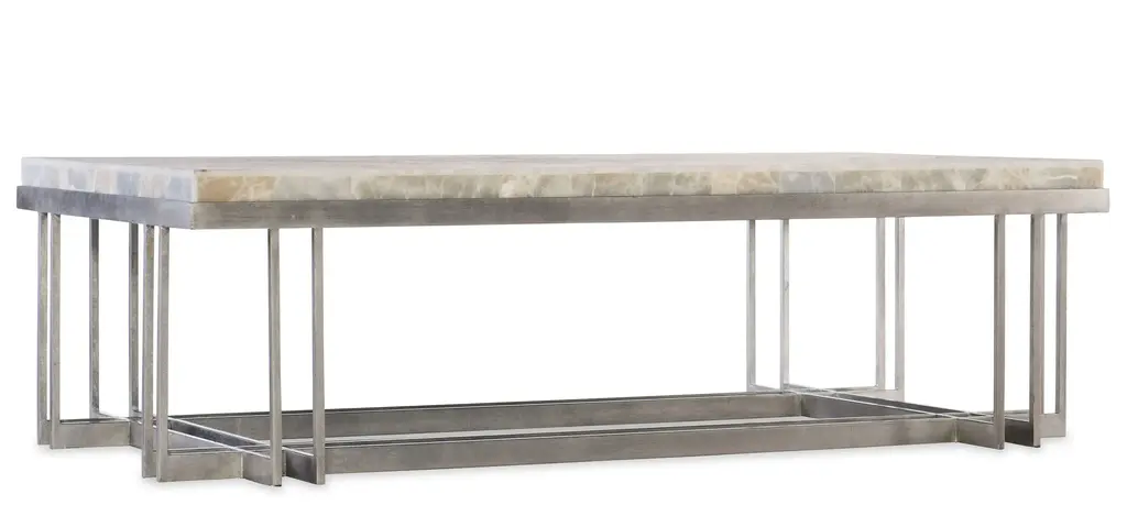 Melange Marin Rectangle Stone Top Cocktail Table, Silver