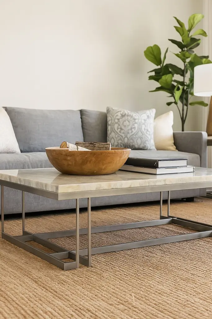 Sleek meets organic with the Marin Cocktail Table, featuring a metal base and an onyx tabletop for a fresh modern appeal. Its linear silhouette and open-frame design bring a sense of lightness and architectural elegance to any living space.