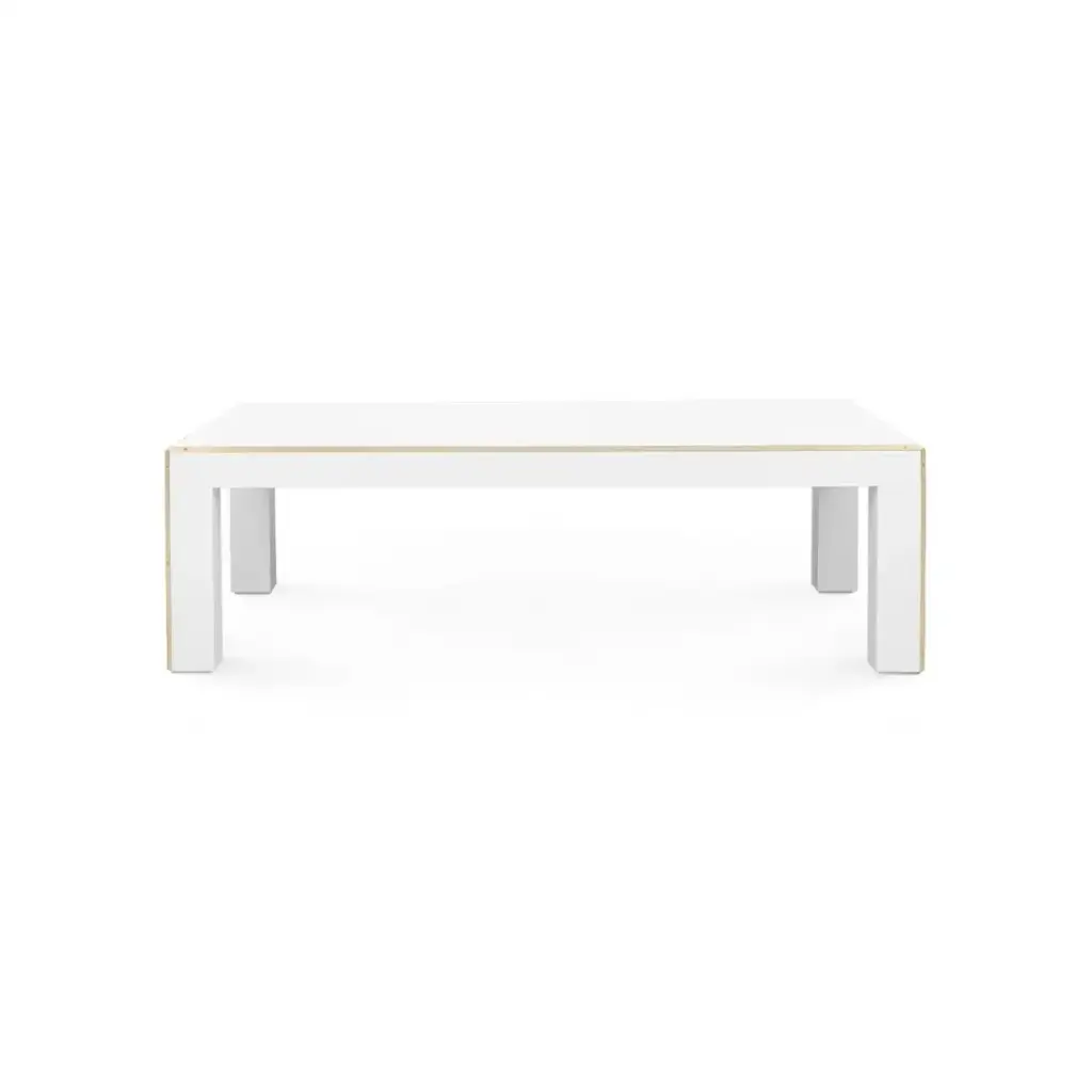 Our Melissa Collection embodies Villa & House’s commitment to blending timeless elegance with modern flair. Crafted by skilled artisans, the Melissa Coffee Table epitomizes contemporary sophistication with its clean lines and sleek angles. Made from wood with a lustrous lacquer finish and accented by inset borders of brushed brass with decorative set screws, the Melissa exudes boldness and refinement. Versatile enough to complement various decor schemes, it adds a touch of luxury to any space, perfect for showcasing prized art pieces, lighting fixtures, or antiques.