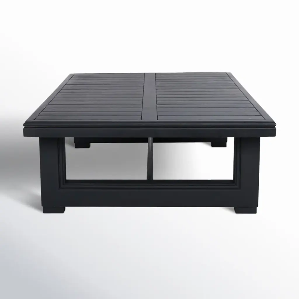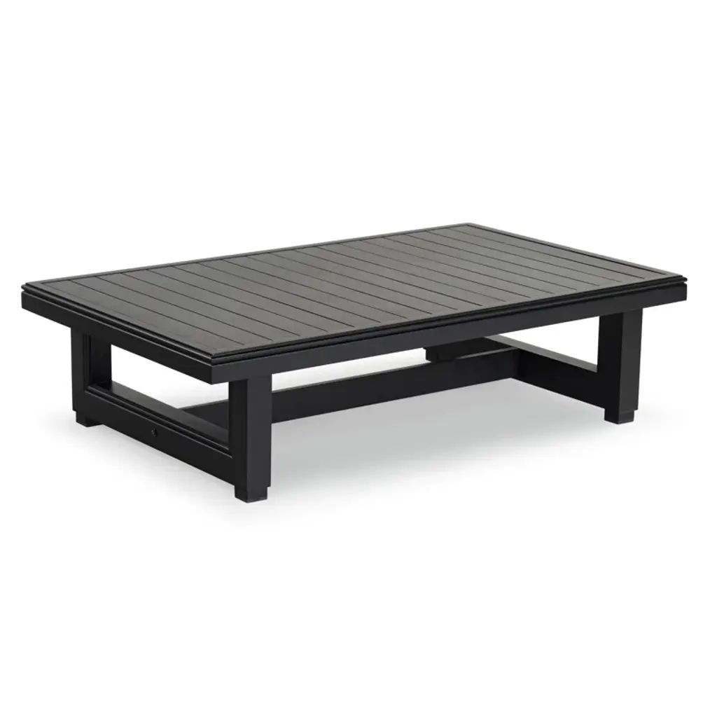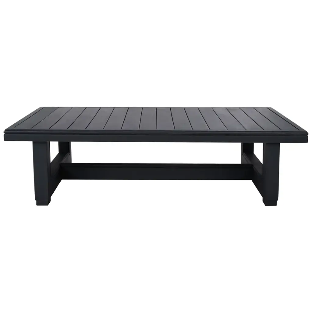 Entertain in style with this contemporary Melrose Coffee Table. Designed for the modern tastemaker, Melrose clean lines and sleek black metal make for effortless elegance in any outdoor living area.