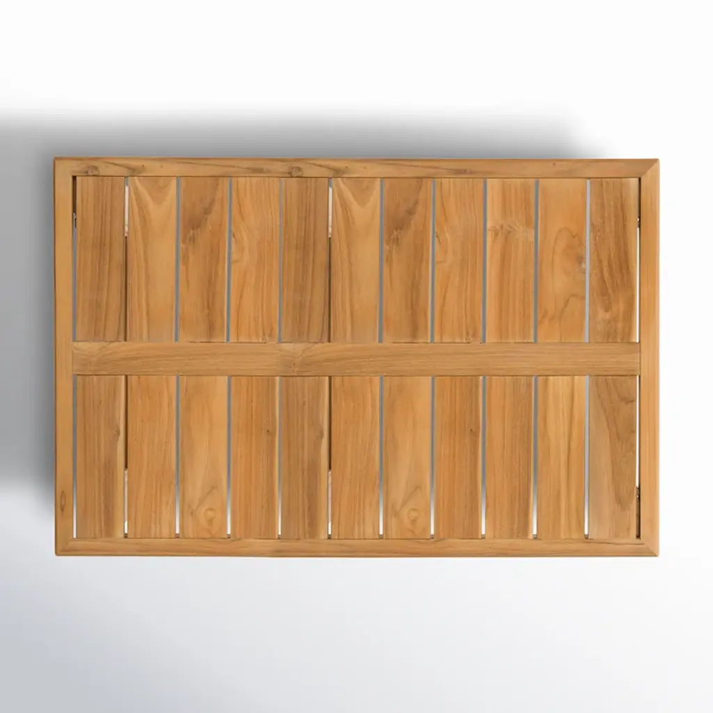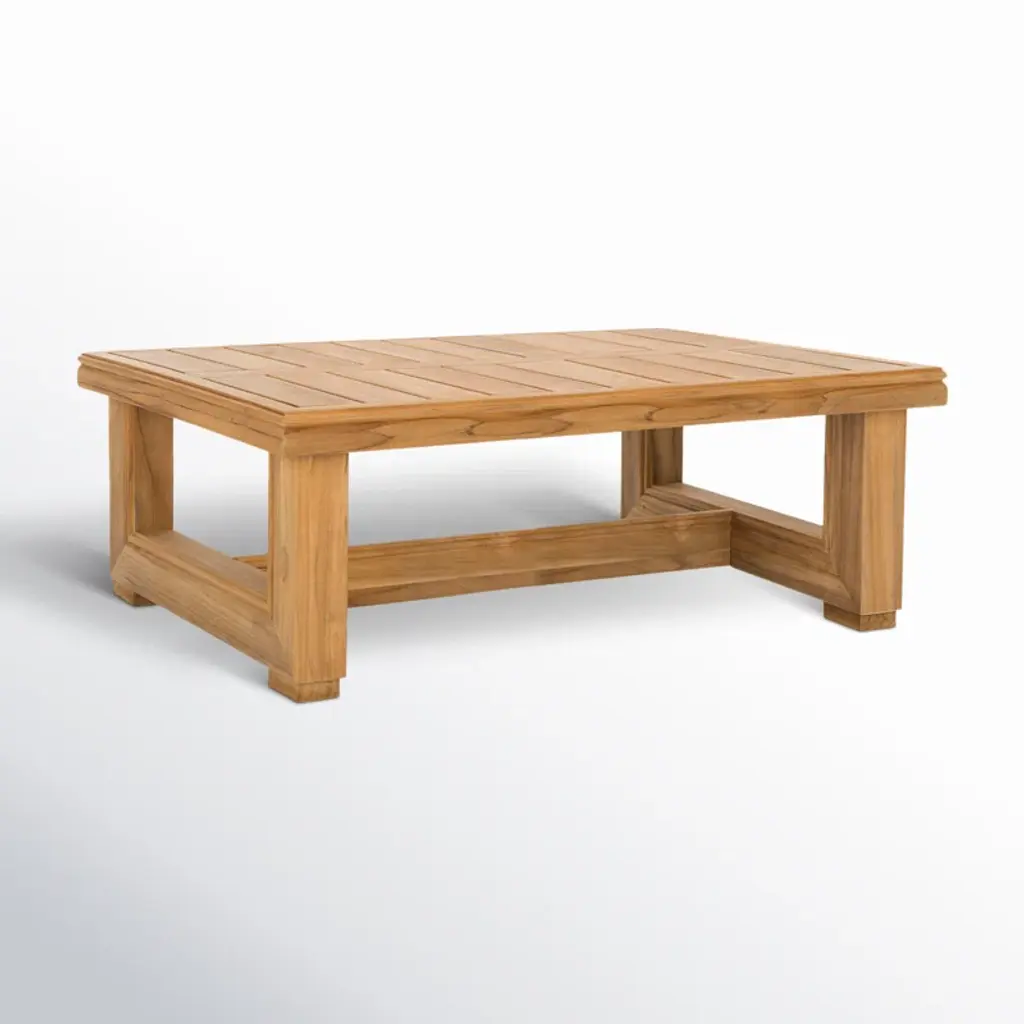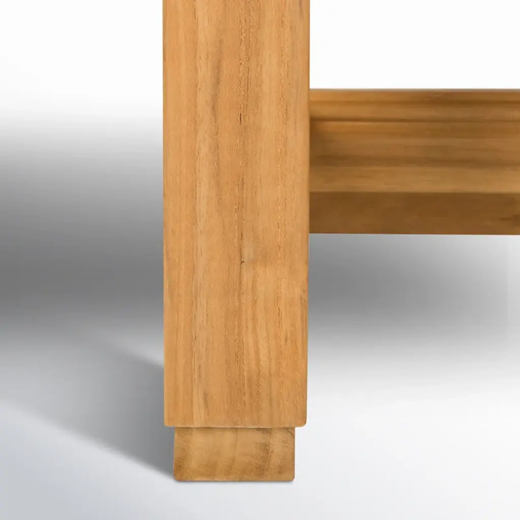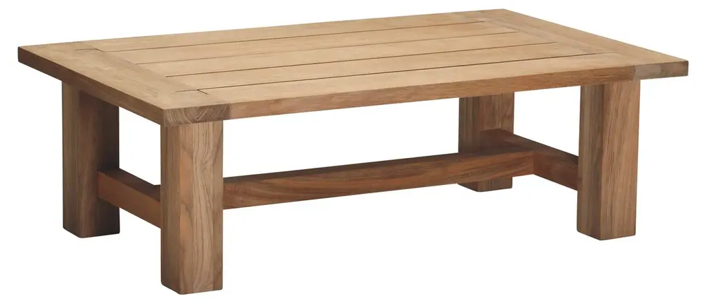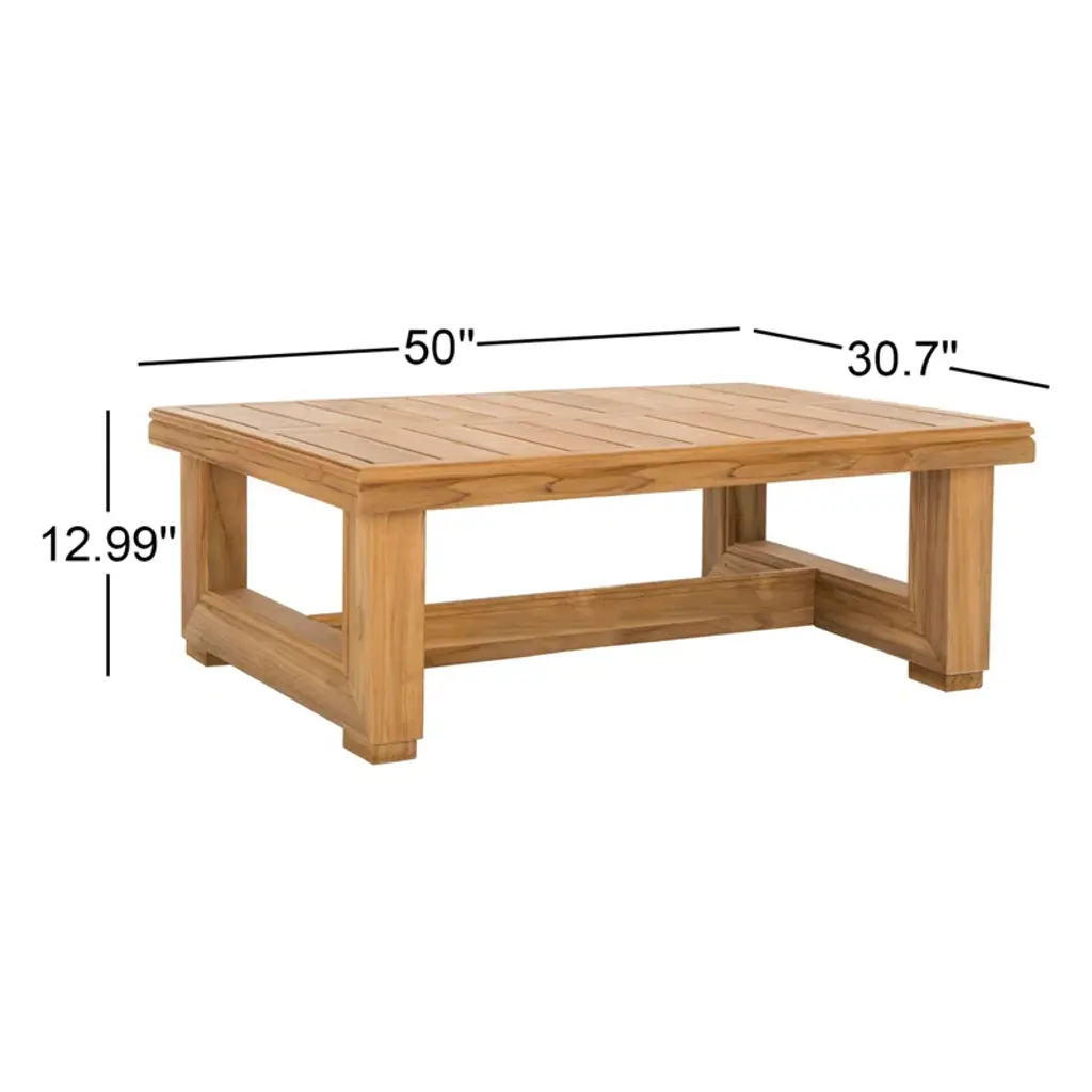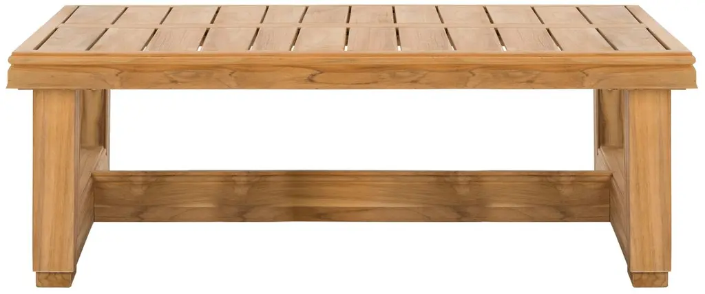 Upgrade your pool deck or back porch with our coffee table. Crafted from solid teakwood in a natural hue, it has a slatted top, cutout sled legs, and a stretcher for exceptional stability. What’s more, it’s resistant to weather, water, rust, and UV fading. Create an inviting seating area with this table as the centerpiece.