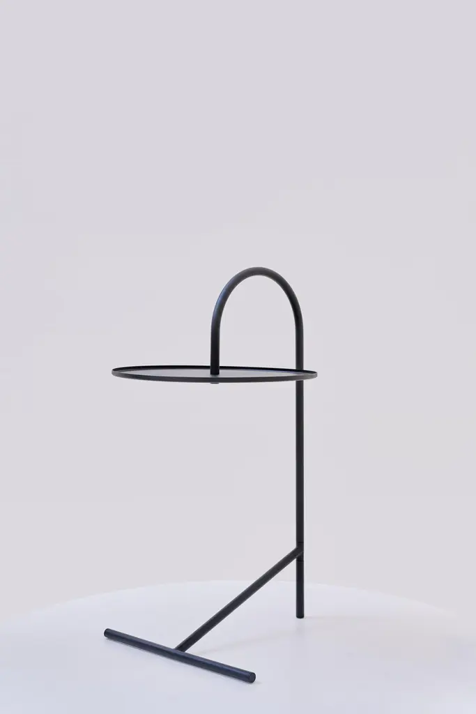 Melt black coffee table by OitoDimensions: D 40 x W 45 x H 75 cmMaterials: Powder coated steelWeight: 5 kgAlso Available in different colors.Suitable for outdoor use.Assembly design. Registered design.The idea of the coffee table MELT, basically, lies in its most extraordinary form.It has only one leg, which is fastened to the tabletop from above, thereby outlines the shape of the arc, which is used as a handle for moving it in any convenient place for you. The tabletop is made from a thin sheet of steel, which emphasizes lightness and unobtrusiveness.One of the important aspects of this product is its simplicity of construction, even though it seems rather convoluted. In order to assemble or disassemble MELT, you only need two screws that are clamped manually.Oitoproducts is a young Ukrainian brand from Kiev. We want to change furniture trends and add more fashion and value to the product.Our Mission is to make furniture part of thinking fashion, not just a daily item. We spend a lot of time on visual and technical beauty!Each product of our line is complex. We value manual labor and try to make every detail meaningful and quality.We support local manufacturers and create new items together. At the moment, Ukraine is not a big Industrial giant, but there is a highlight. All our items are the result of manual labor, and it is always warmer and more emotional.Until recently, the world did not know Ukrainian design, but recently everything is changing.There are many original designers from Ukraine who develop and collaborate with many world designers.Ukrainian designers are already a large Community that is changing post-Soviet realities into well-thought-out semantic spaces.Ivan Voitovich, the founder of oitoproducts and his team is a full fan of the creation.We are building a new brand that is changing our reality. We want our environment to give us more positive emotions and experiences.