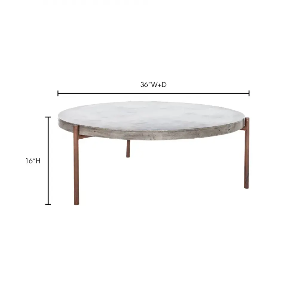 Mendez is a 3' round table with a light-weight fiber-stone top and thin steel legs. A freshly modern look.