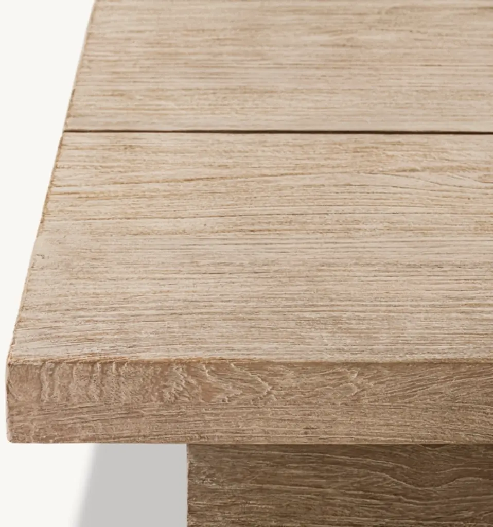 Inspired by his native Ardennes Forest, Belgian designer Gommaire Cleybergh has created a collection that evokes its rugged natural beauty. The embodiment of spare, minimalist design, Menorca's tabletop extends beyond an inset plinth base, appearing as if to float. Bold teak planks are punctuated with slender apertures that reinforce the horizontal line, while a matte washed finish enhances the wood's natural grain. Guaranteed for life.SHOP THE ENTIRE COLLECTION
