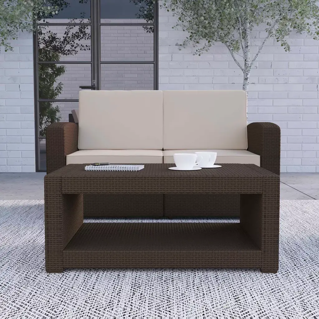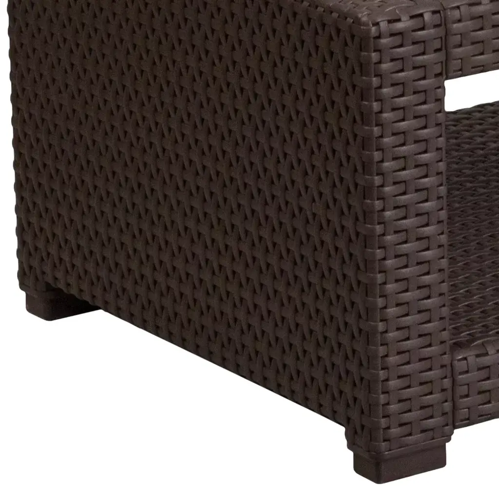 Merrick Lane Outdoor Furniture Coffee Table Chocolate Brown Faux Rattan Wicker Pattern All-weather Patio Coffee Table With Shelving