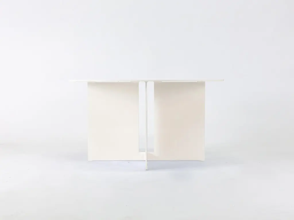 The Mers Coffee Table is fabricated from solid aluminum and is suitable for use indoors and out. Form is inspired by the simple utilitarianism of West Coast aluminum fishing boats.Shown in aluminum with Cream painted finish.Custom sizing and colors available.Overall dimensions: 30" D x 16" T.All new format pieces are handmade in Vancouver, Canada.