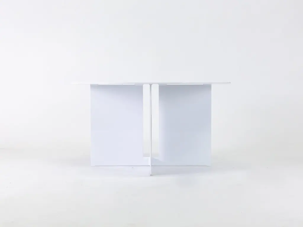 The Mers Coffee Table is fabricated from solid aluminum and is suitable for use indoors and out. Form is inspired by the simple utilitarianism of West Coast aluminum fishing boats.Shown in aluminum with White painted finish. Custom sizing and colors available.Overall dimensions: 30" D x 16" HAll New Format pieces are handmade in Vancouver, Canada.