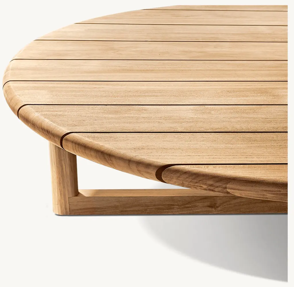 Informed by midcentury modern design yet of the moment, our sculptural collection by Mario Ruiz of Spain epitomizes the strength of simplicity. A pair of open, architectural stirrup bases supports the table's slatted top in a graceful play of angles that is understated yet compelling and complex. ALSO AVAILABLE IN ALUMINUM SHOP THE ENTIRE COLLECTION