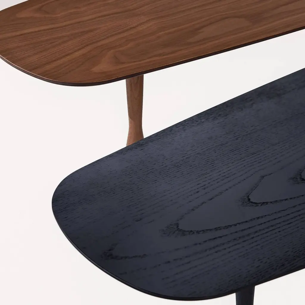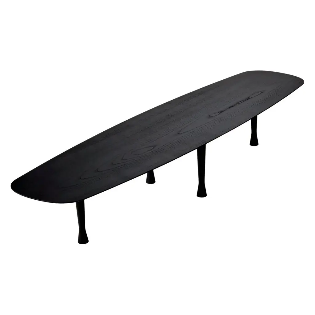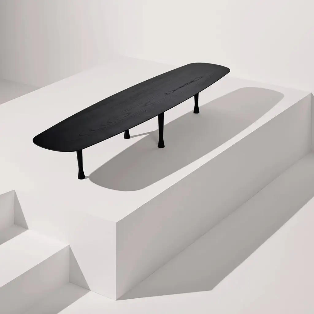 Artfully slicing through a room's decor like a surfboard cuts through the water, Nomon Home's elongated coffee table is a stunner. Manufactured in Spain with artisanal craftsmanship, Mesa Única is fashioned with a monochromatic finish in either natural walnut or black-stained ash. The sweeping lines are further heightened by the table's discreet height and the innovative positioning of its solid-wood legs in a diamond shape.