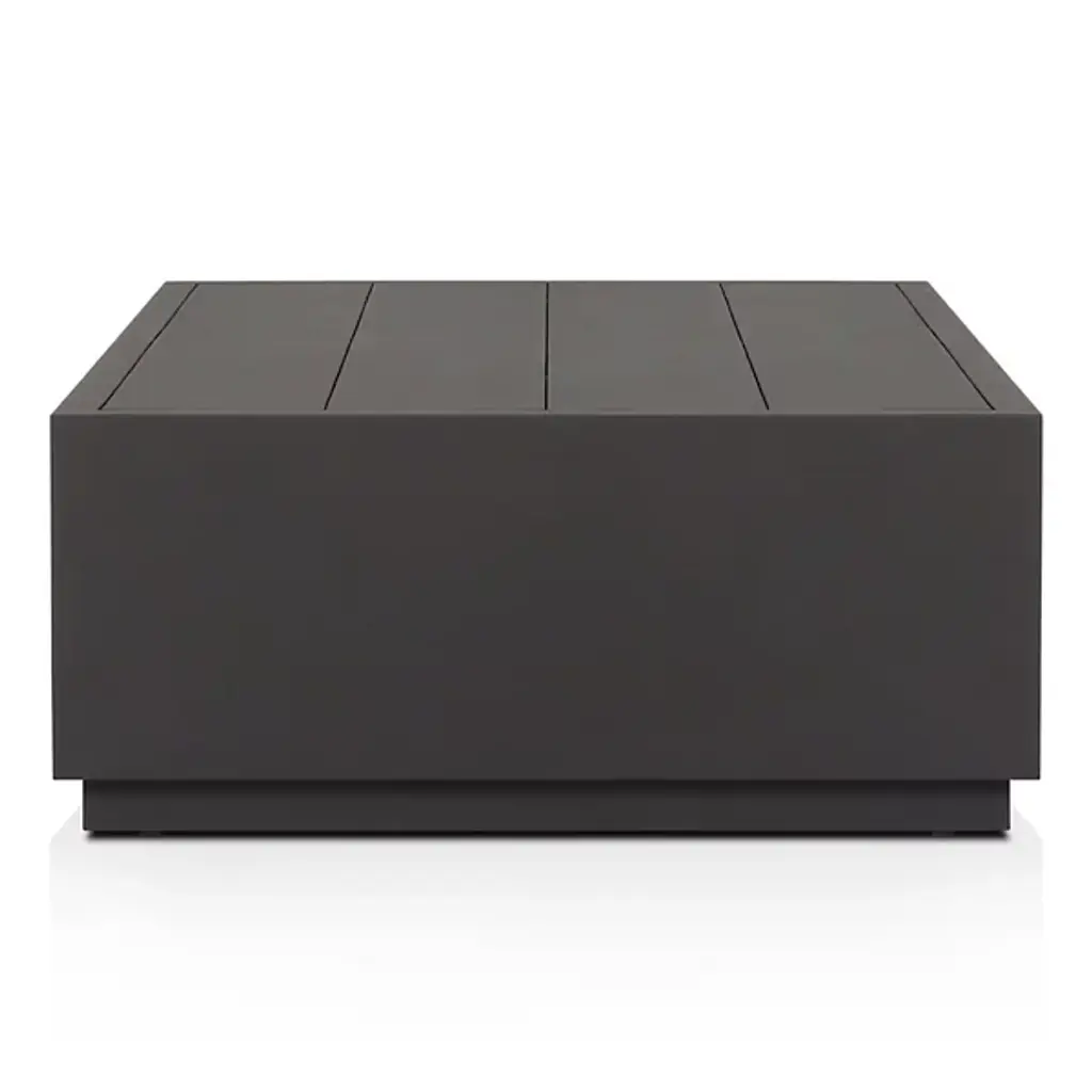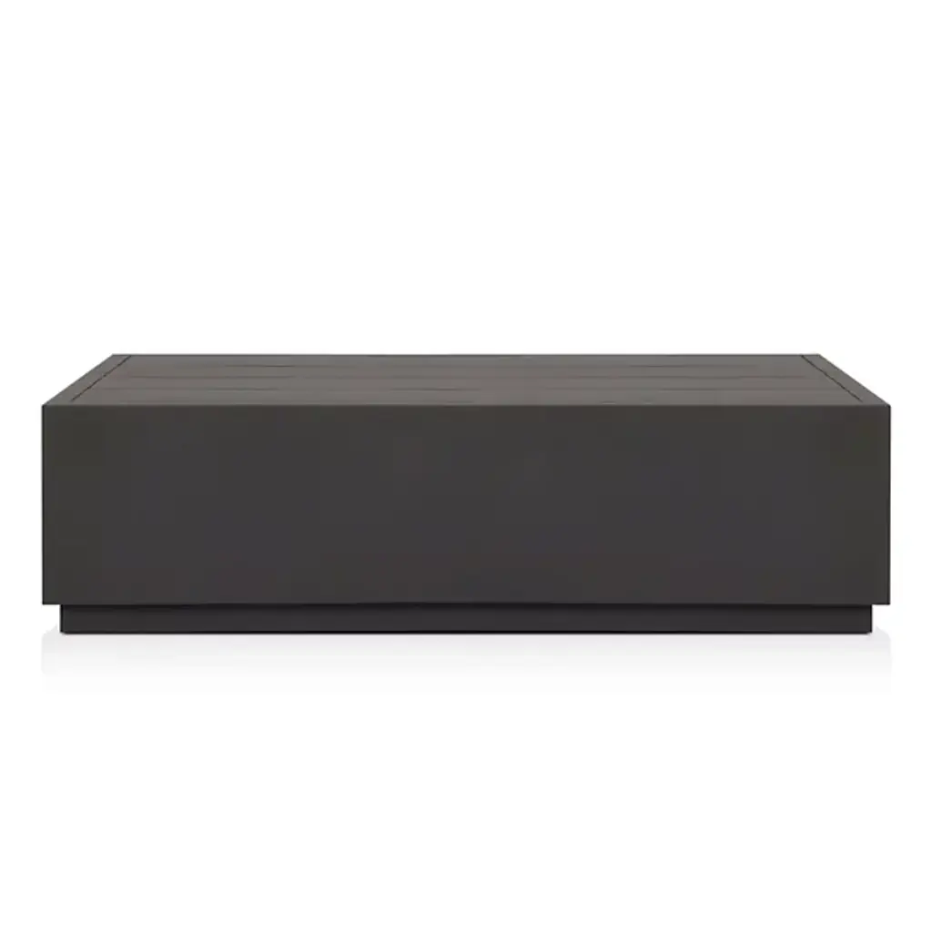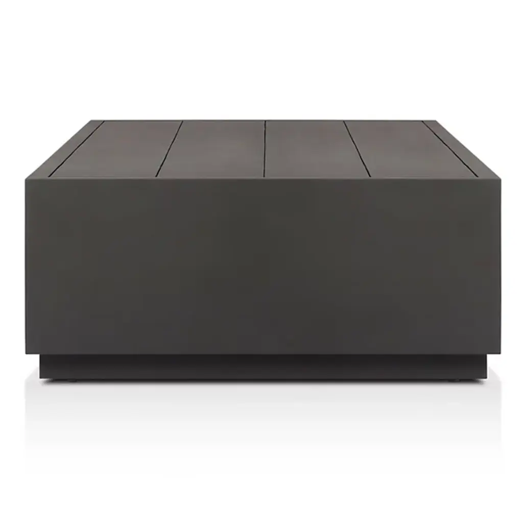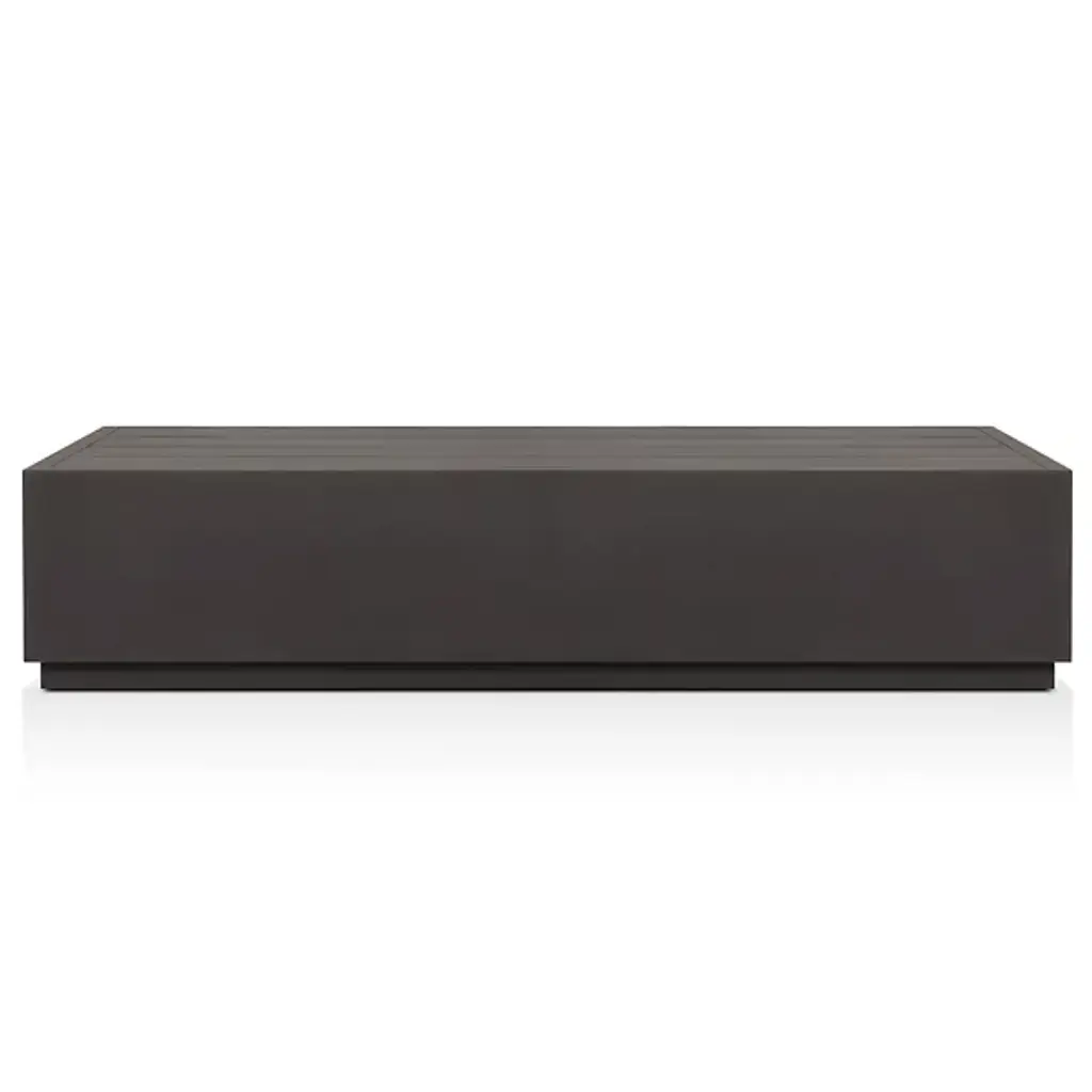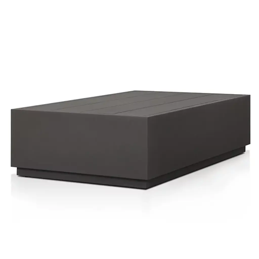 The Messo Outdoor Coffee Table from Four Hands blends contemporary design and outdoor functionality. Crafted in the shape of a streamlined, rectangular prism, this coffee table is a minimalist piece designed to elevate your outdoor living space. Made from durable aluminum, Messo boasts a 21st-century aesthetic and has weather-resistant qualities. Its clean lines and simple form create a versatile surface, providing space for placing mugs, trays, or other outdoor essentials.