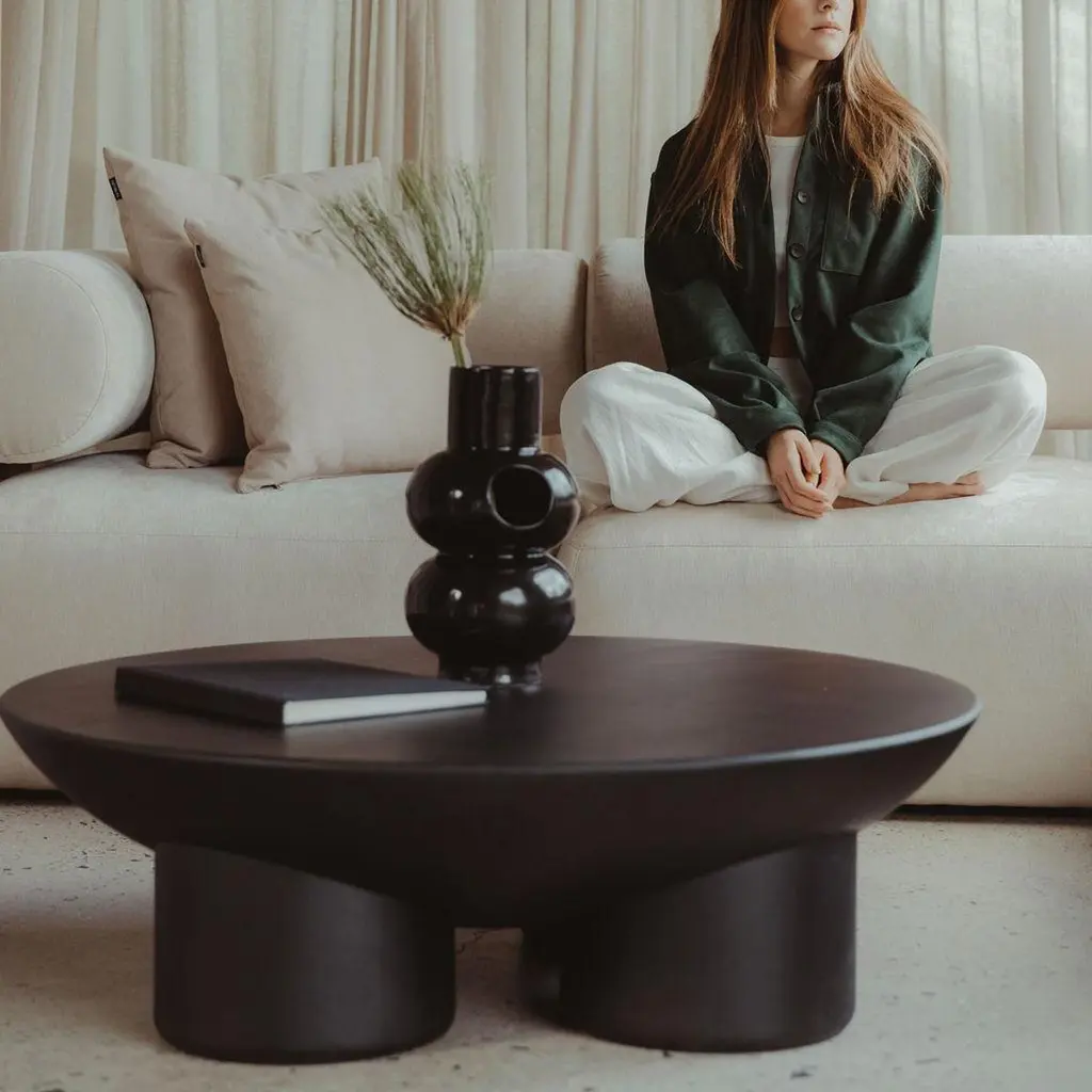 Metate Black Wood Coffee Table By David Del Valle
