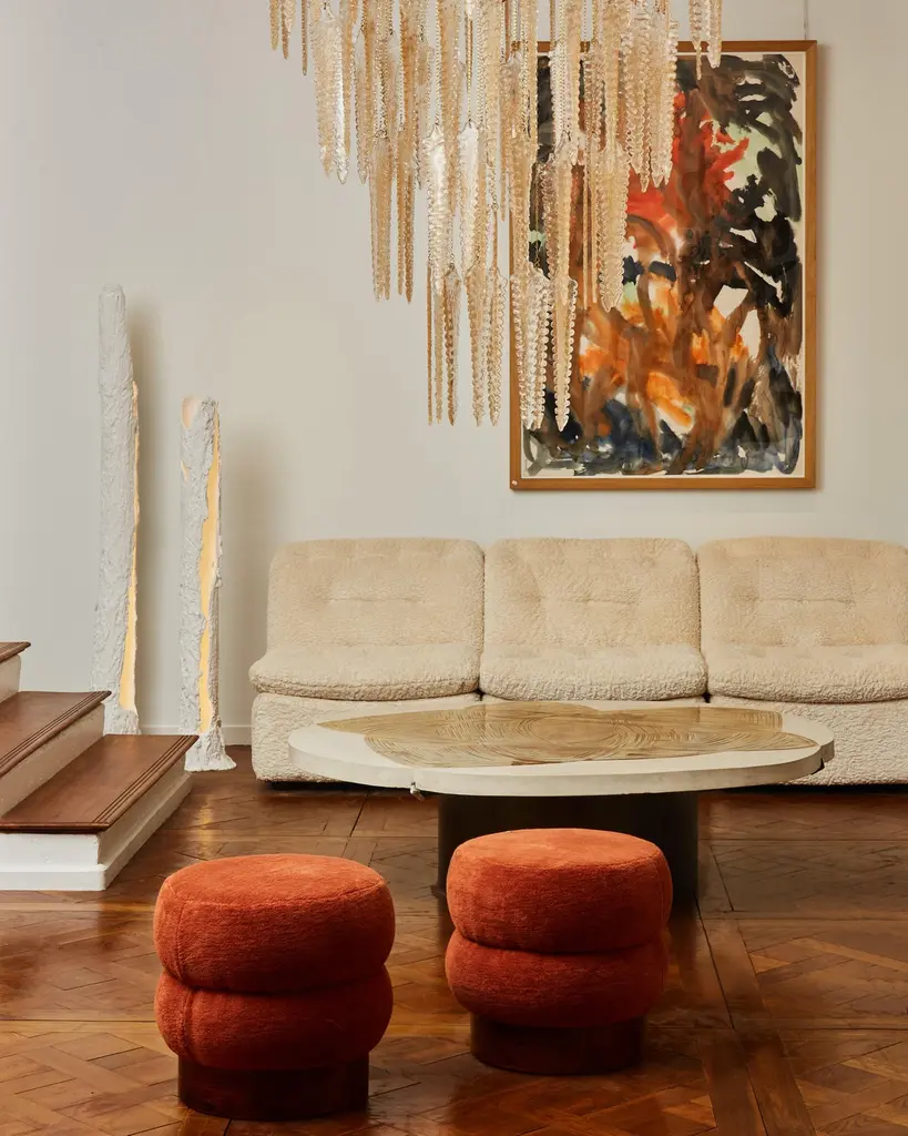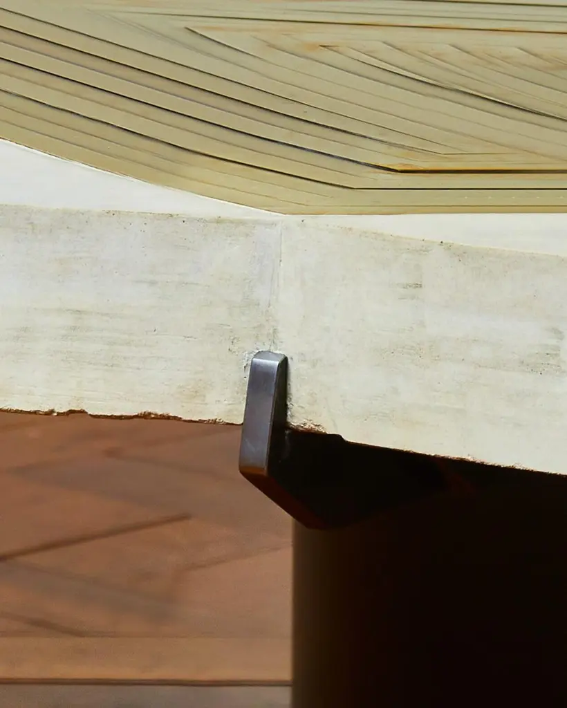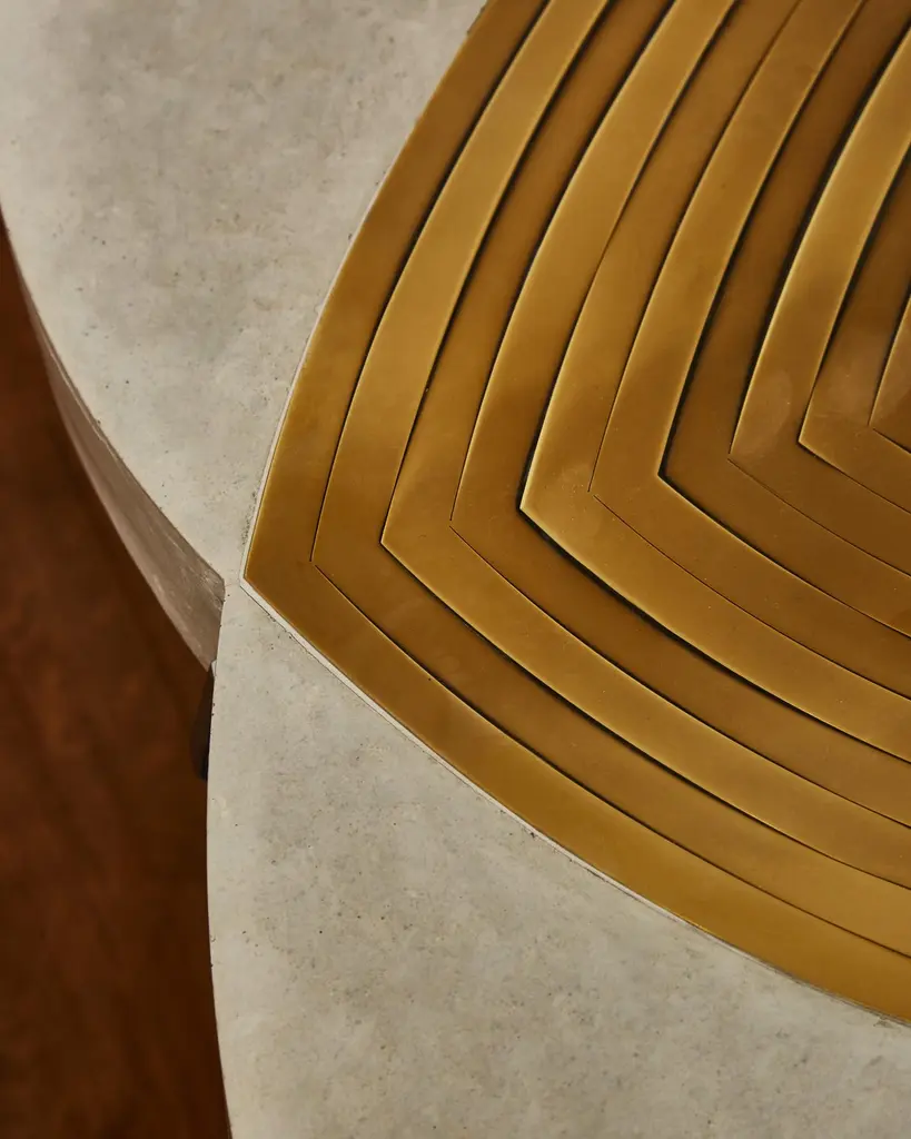 Exceptional "Metis" coffee table in white concrete and brass marquetry. Numbered and signed piece by the french artist Erwan Boulloud, 2022.
