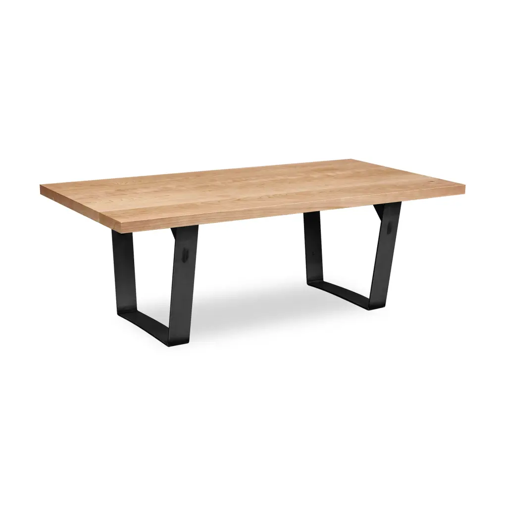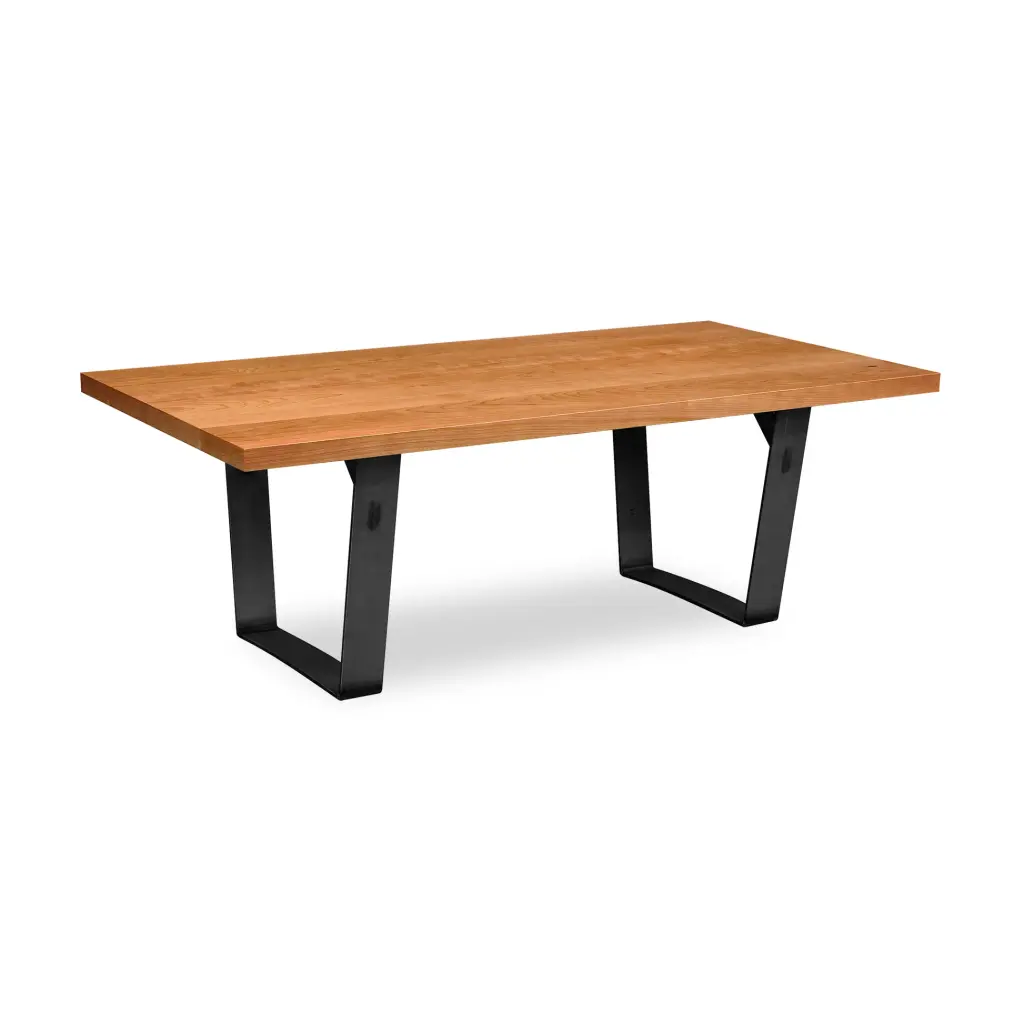 Our modern Metropolitan Coffee Table features a clear powder-coated steel metal base. Customize online with a solid natural cherry, maple, oak or walnut hardwood plank table top. Each modern coffee table is custom-made by skilled craftspeople. Natural finish protects and enhances the natural beauty and grain of the wood. The result is a beautiful, solid wood coffee table perfect for a loft or city apartment. A modern, clean and simple design that looks great in any setting.