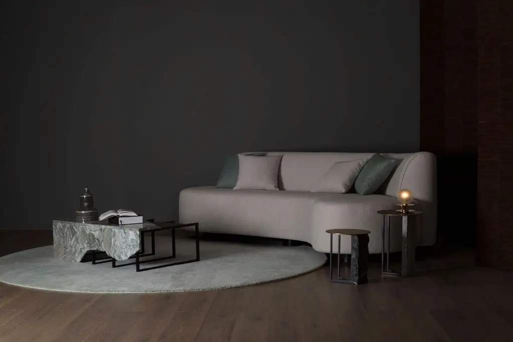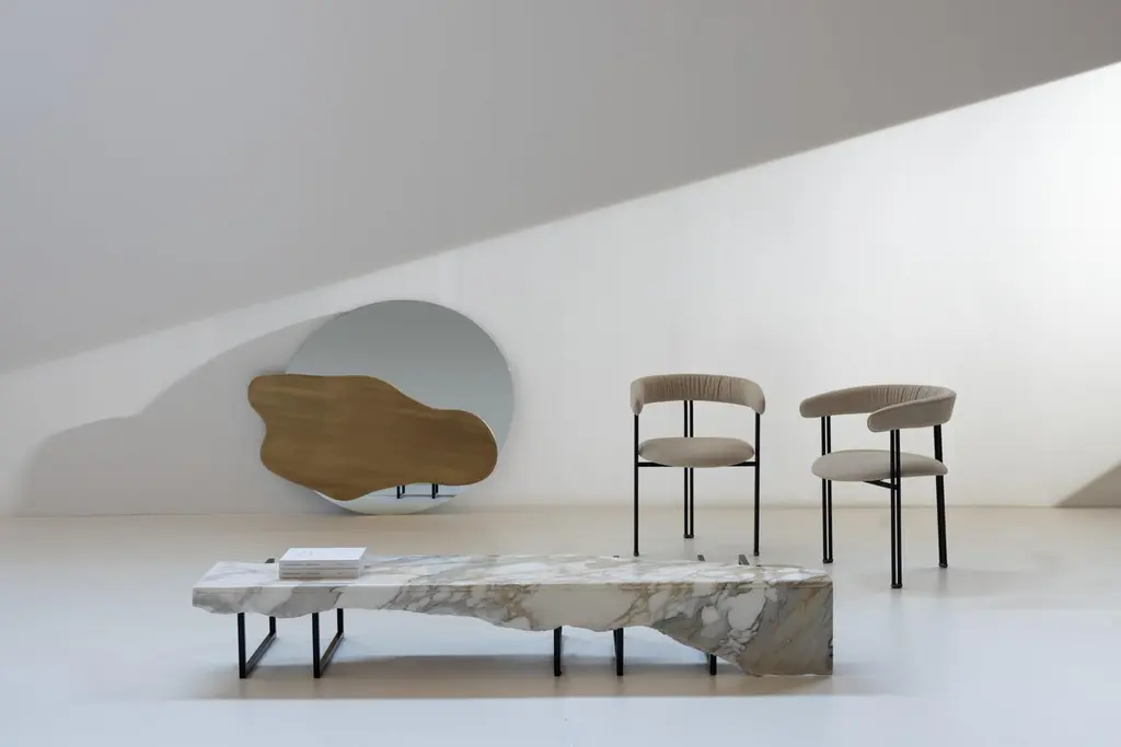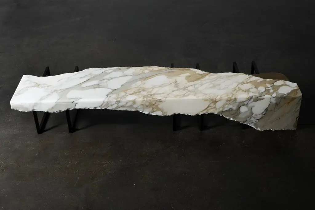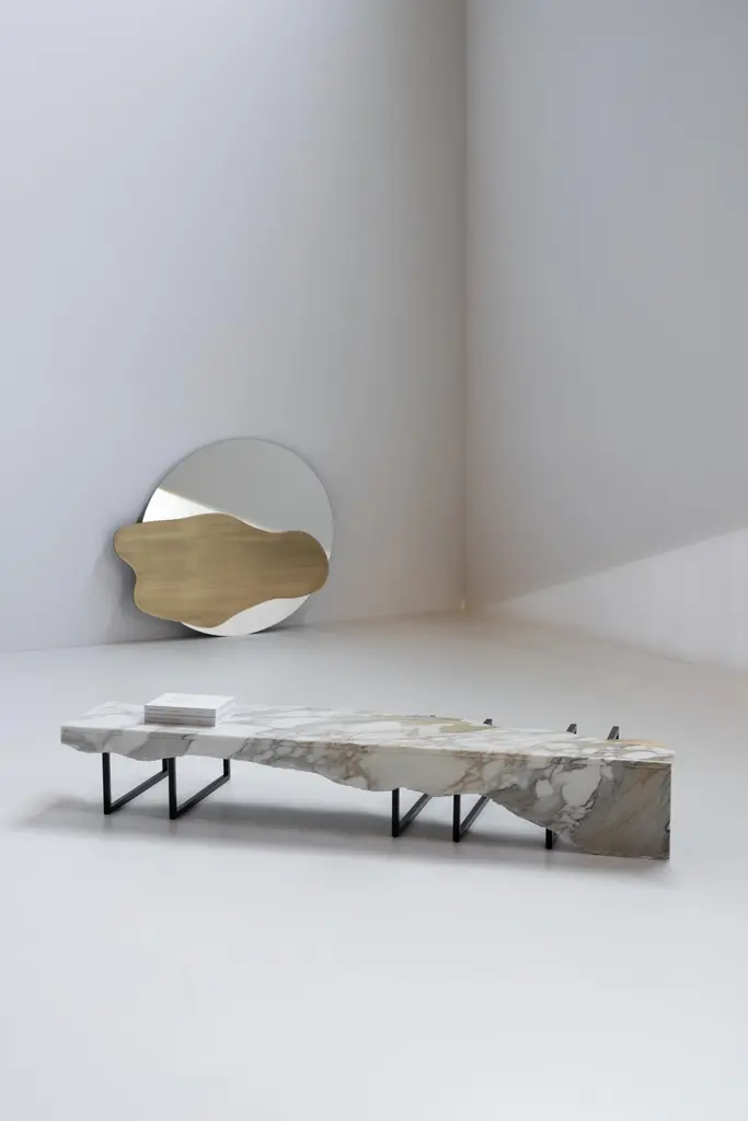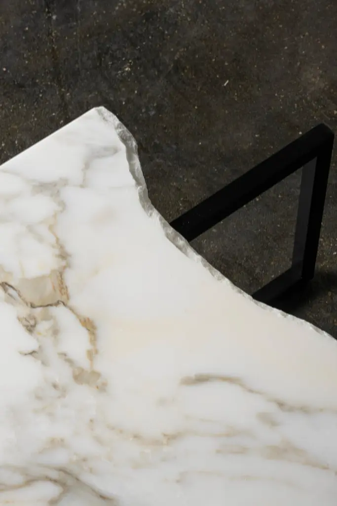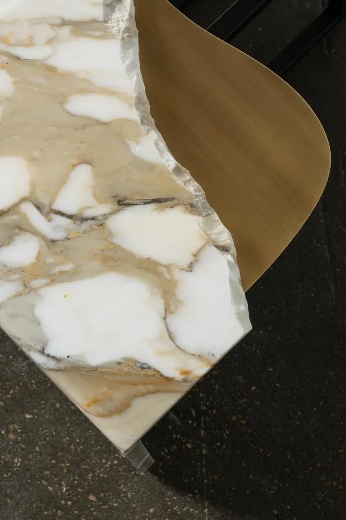 Mid-Century Modern Aire Marble Coffee Table, Calacatta Oro, Handmade Greenapple
