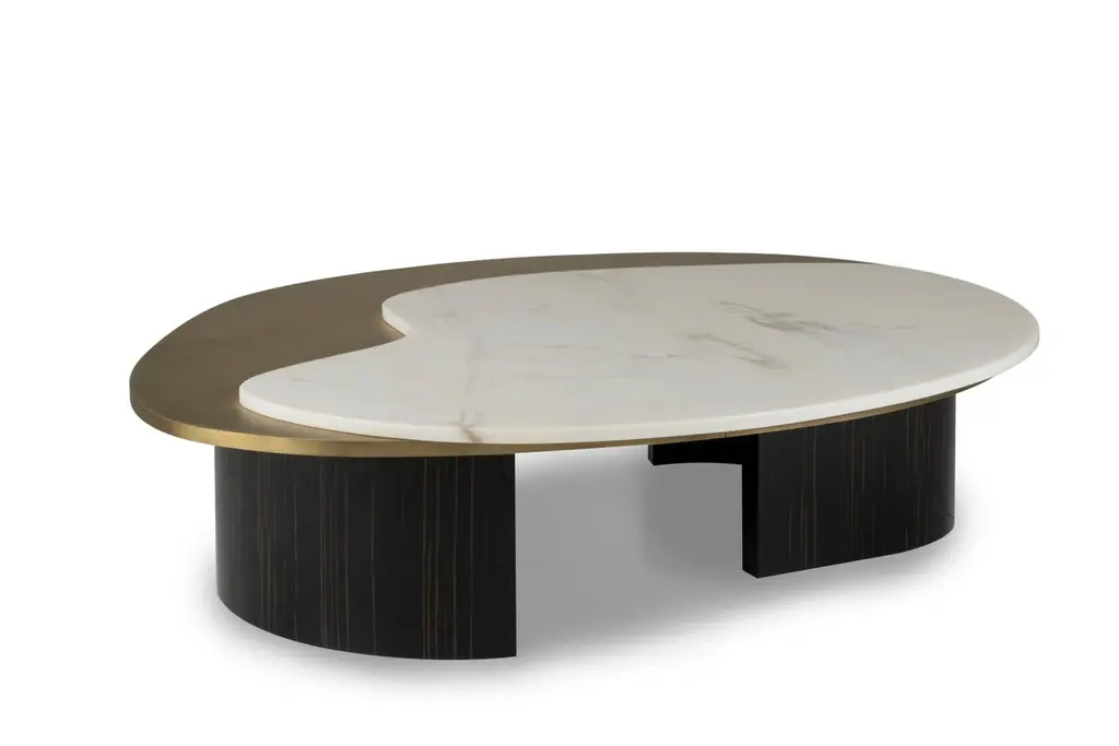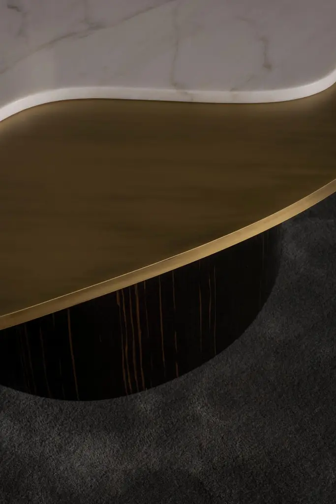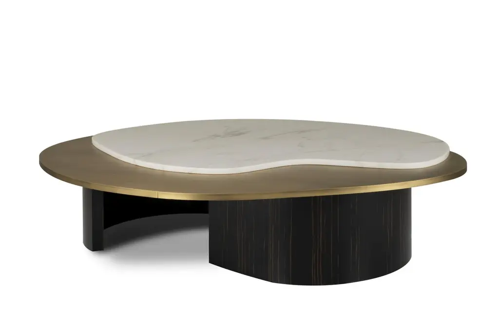 Mid-Century Modern Landscape Coffee Table, Contemporary Collection, Handcrafted in Portugal - Europe by Greenapple.Designed by Rute Martins for the Contemporary Collection and inspired by fluid lines like in nature, this low table adds a representation of our earth’s visual history to every living space. Its organic, flowing form creates a stunning combination between the lush stone texture of the Calacatta Cremo marble, the oxidized brass, and the Macassar Ebony veneer.Landscape Coffee Table Material CodesST010 Calacatta Cremo marble; polishedME032 Oxidized brass; matt finishWD099 Macassar ebony pré-composite; natural colour; high-gloss finishHandcrafted in Portugal - Europe by GreenappleUnique by design, Crafted by peopleFounded in 2005 by Sérgio Rebola and Rute Martins, Greenapple designs and produces in-house luxury furniture for exclusive customers worldwide.Our own in-house production facility allows us to be obsessed with detail, and gives us the freedom to dedicate ourselves to the most demanding tailor-made and customized work. As Rute designs all the unique pieces, Sérgio assures the high-quality standards through the whole process - from design to production; from production to your home. Fine craftsmanship, whether perfected by experienced hands or state-of-the-art machinery is quintessential in delivering top quality experiences.